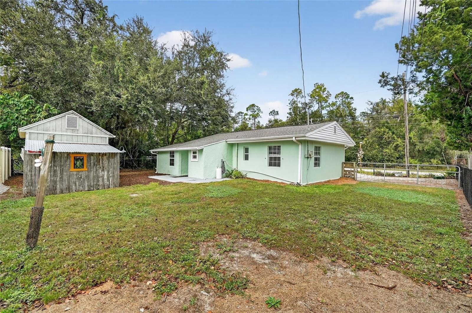 One or more photo(s) has been virtually staged. Welcome to this versatile two-bedroom, one-bathroom home in New Port Richey, offering the perfect blend of comfort and flexibility. Whether you’re looking for a residential retreat or a commercial opportunity, this property is ready to accommodate your needs. Recent updates include a 2025 AC system with new ductwork, a 2023 roof, a 2022 water heater, and a septic system pumped in 2022, providing peace of mind and modern convenience. Inside, the home features an open living room and kitchen combo, an indoor laundry room with additional storage, and a layout designed for easy living. Step outside to the fenced backyard, complete with a shed equipped with power and an exhaust fan, perfect for hobbies or extra workspace. The backyard also offers ample space to garden, grill, and enjoy the Florida sunshine. Located close to shopping centers, parks, and dining options, this property combines practicality, versatility, and a convenient location - ideal for anyone seeking a home with potential for commercial use. Schedule your showing today.