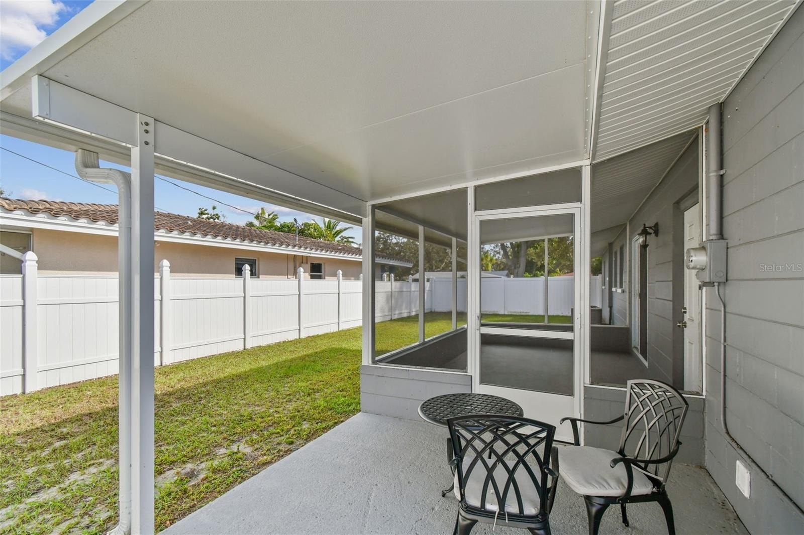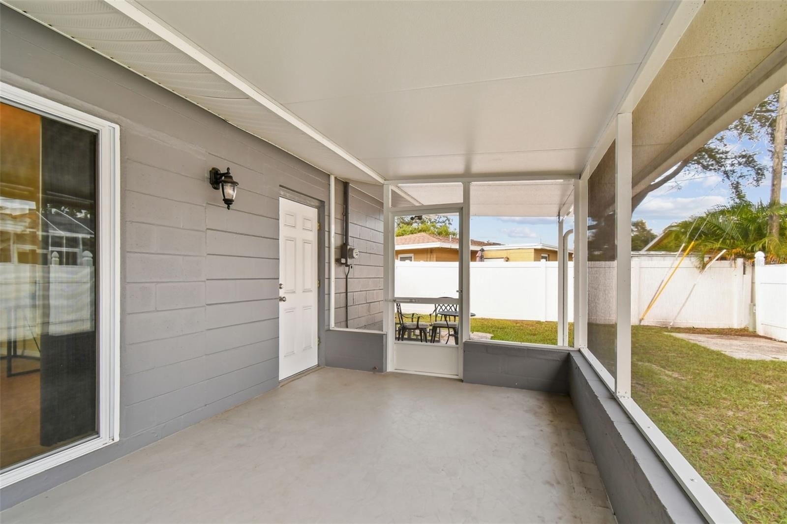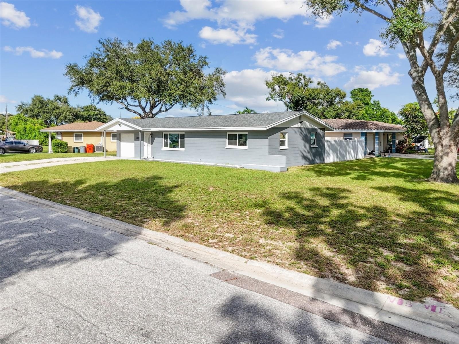 Great corner Seminole home, solid block in a non-flood area. Sits high on the lot. Beautiful neighborhood with pride of ownership. This home is immaculate, with 2 bedrooms, 1 updated sparkling bathroom, 1 car garage with double driveway for plenty of parking. Nice clean curb appeal and easy to maintain lawn with Rainbird auto-sprinkler system on timers. The Living Room is quite spacious, with L-Dining into the Kitchen area. The galley Kitchen has been remodeled with plenty of lovely wood cabinets and stainless appliances that include refrigerator, range, microwave, and dishwasher. This home is light and bright with hurricane impact windows, light neutral tile throughout the living spaces, remodeled bathroom, 6 panel doors, pretty ceiling fans and modern lighting in every room. Sliders from the dining area to the screened enclosed porch, which includes a portion of open patio perfect for your BBQ grill. Everything is done here. Newer impact windows 2021, HVAC in 2021, Roof in 2021, vinyl-fenced backyard, spacious side yard. Just a few minutes to the bustling Seminole Mall filled with fun restaurants, shopping, movies, banks and only about 10 minutes to the Gulf Beaches.