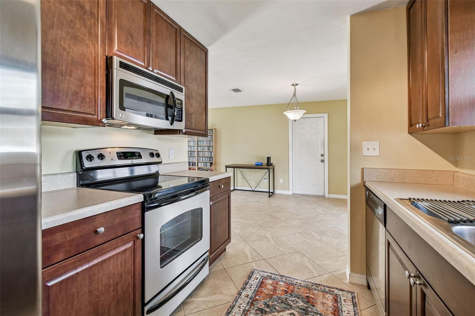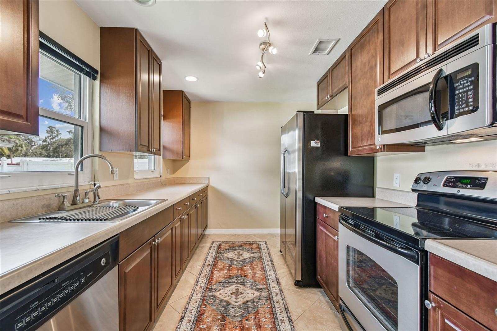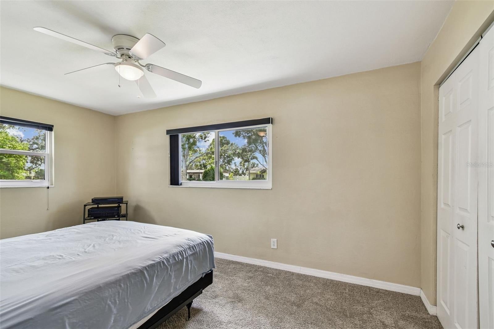 Great corner Seminole home, solid block in a non-flood area. Sits high on the lot. Beautiful neighborhood with pride of ownership. This home is immaculate, with 2 bedrooms, 1 updated sparkling bathroom, 1 car garage with double driveway for plenty of parking. Nice clean curb appeal and easy to maintain lawn with Rainbird auto-sprinkler system on timers. The Living Room is quite spacious, with L-Dining into the Kitchen area. The galley Kitchen has been remodeled with plenty of lovely wood cabinets and stainless appliances that include refrigerator, range, microwave, and dishwasher. This home is light and bright with hurricane impact windows, light neutral tile throughout the living spaces, remodeled bathroom, 6 panel doors, pretty ceiling fans and modern lighting in every room. Sliders from the dining area to the screened enclosed porch, which includes a portion of open patio perfect for your BBQ grill. Everything is done here. Newer impact windows 2021, HVAC in 2021, Roof in 2021, vinyl-fenced backyard, spacious side yard. Just a few minutes to the bustling Seminole Mall filled with fun restaurants, shopping, movies, banks and only about 10 minutes to the Gulf Beaches.