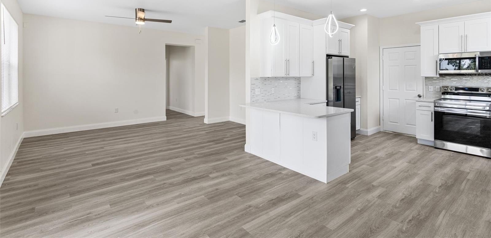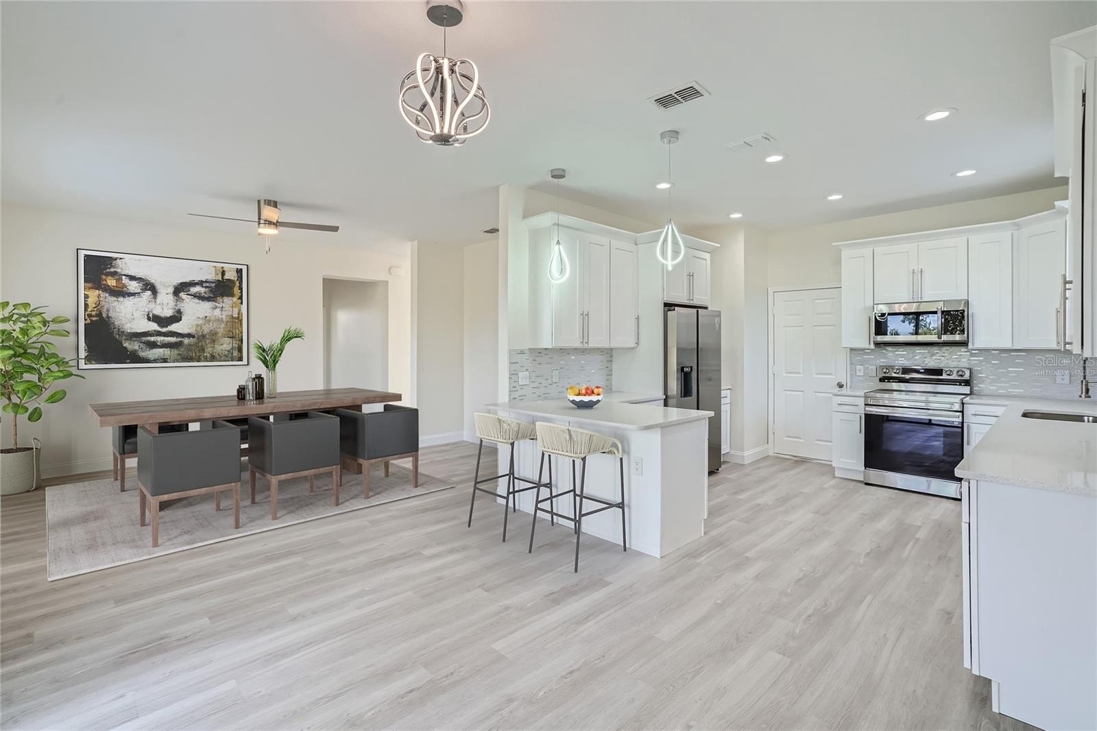 BACK ON MARKET FULLY RENOVATED AND BRAND NEW ROOF!!! .... SELLER OPEN TO ASSISTING WITH BUYER CLOSING COSTS!! Beautifully renovated, 3 bed 2.5 bathroom home that has freshly painted interior and exterior. Gorgeous new kitchen with modern design including granite counter tops, gorgeous backsplash, modern style sink, trendy interior lighting, and stainless steel appliances (refrigerator, oven/stove, dishwasher, and overhead microwave). New modern styled laminate flooring throughout the house, no carpets anywhere. Notice the wide open floor plan giving countless options on how to interior design. As a courtesy, we've included virtually staged photo examples to give fun decorative ideas. The upstairs includes a BONUS loft with many options for use, included are 2 virtually staged ideas. House INCLUDES WASHER AND DRYER in the newly renovated laundry room. Master bedroom has plenty of space and a spacious walk in closet! You'll love the modern-style renovated bathrooms, with the master bath having a gorgeous standing shower with tiling to the ceiling! New lighting and new ceiling fans installed throughout the house. Gorgeous modern design front door at the entry way with privacy glass. Huge backyard space with no backyard neighbors to deal with, but instead access to a stunning lake style body of water! Very peaceful, and laid back community. The house sits on at center of a cul-de-sac with new landscaping and beautiful views. Harbour Isles offers resort style clubhouse including pool, fitness center, banquet room, basketball court, playground, and volley ball. At this price this house is a dream come true. Virtually staged photos included.