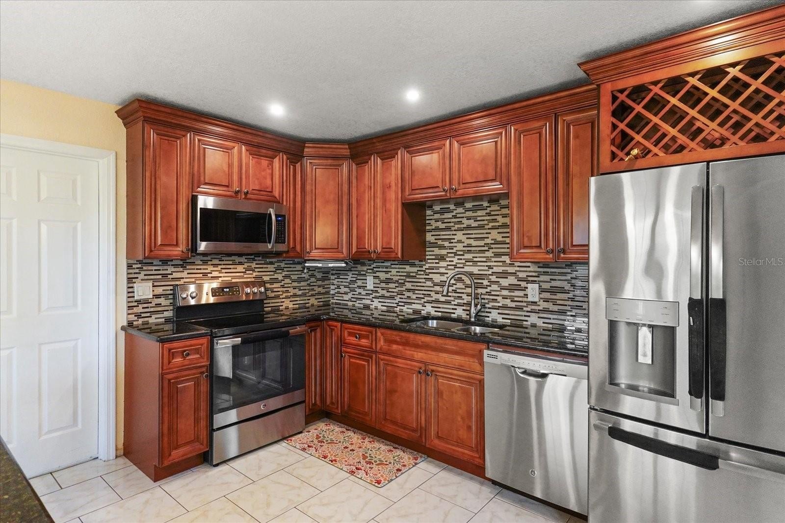 COME FALL IN LOVE....with this 3 Bedroom 2 Bath Split Plan home that is in mint condition! As you enter, you will appreciate thr spacious Living Room and Soaring Vaulted ceiling Dining Room for relaxing and entertaining joy. Beautiful ceramic tile plank flooring enhance the beauty. The kitchen is a cooks delight with rich, solid wood cabinets and granite countertops and dramatic back splash. Gleaming stinless stell appliances and huge island informal dining make this complete.