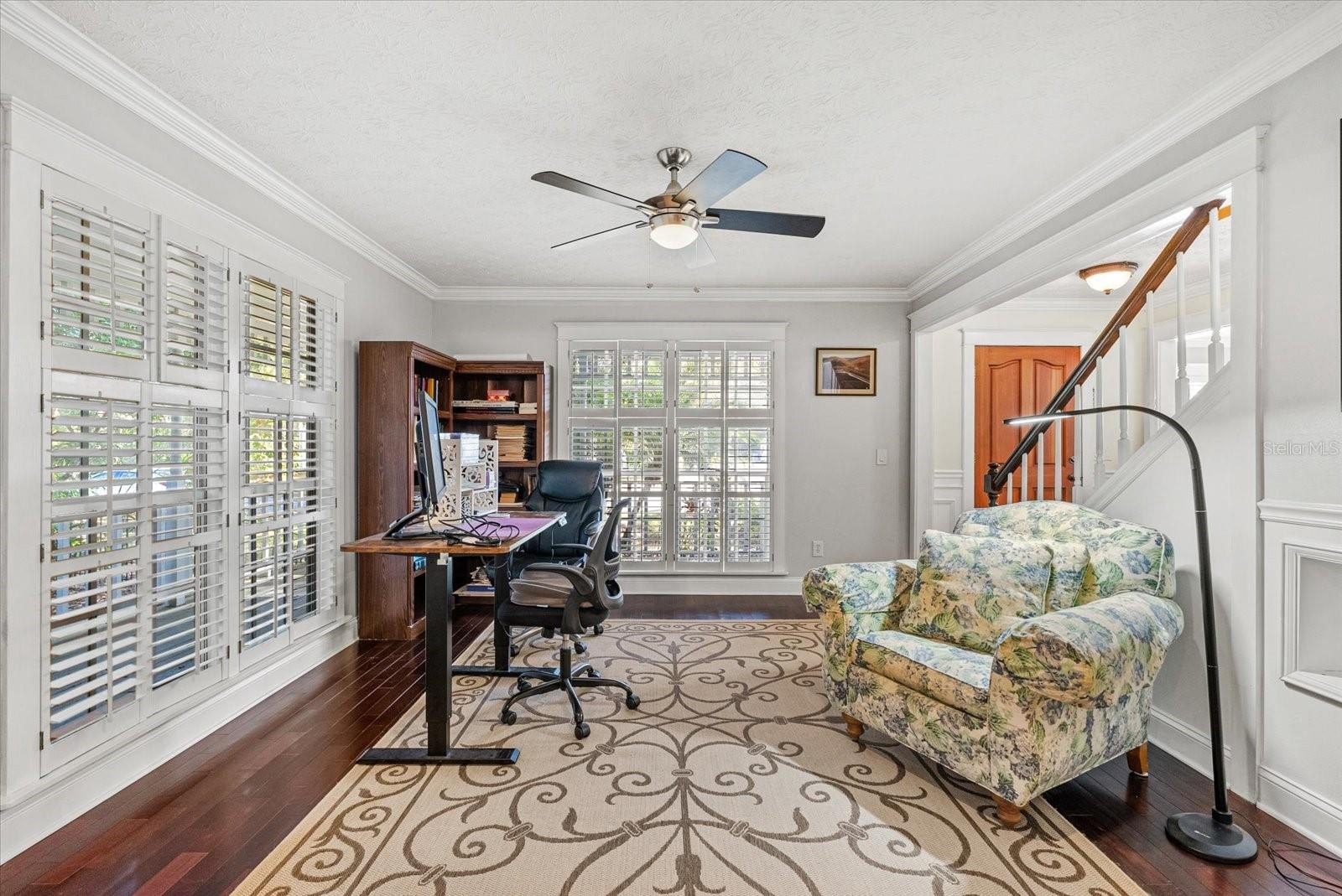 Welcome to this inviting 4-bedroom, 2.5-bath home located in the highly desirable community of The Hammocks in Greater Northdale. With 3,619 sq ft under roof, this residence blends timeless Victorian character with modern Florida comfort. Inside, you’ll find a beautifully flowing layout featuring formal living and dining rooms, an inviting family room with a fireplace and expansive sliders overlooking the screened lanai that can be opened up for additional entertaining. Intricate custom moldings that showcase true craftsmanship are featured throughout the entire home, including a built-in under the staircase that adds both personality and function.