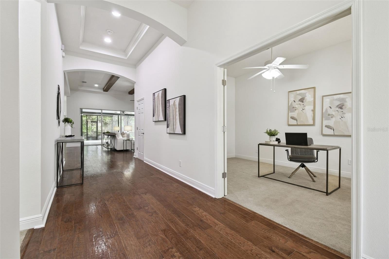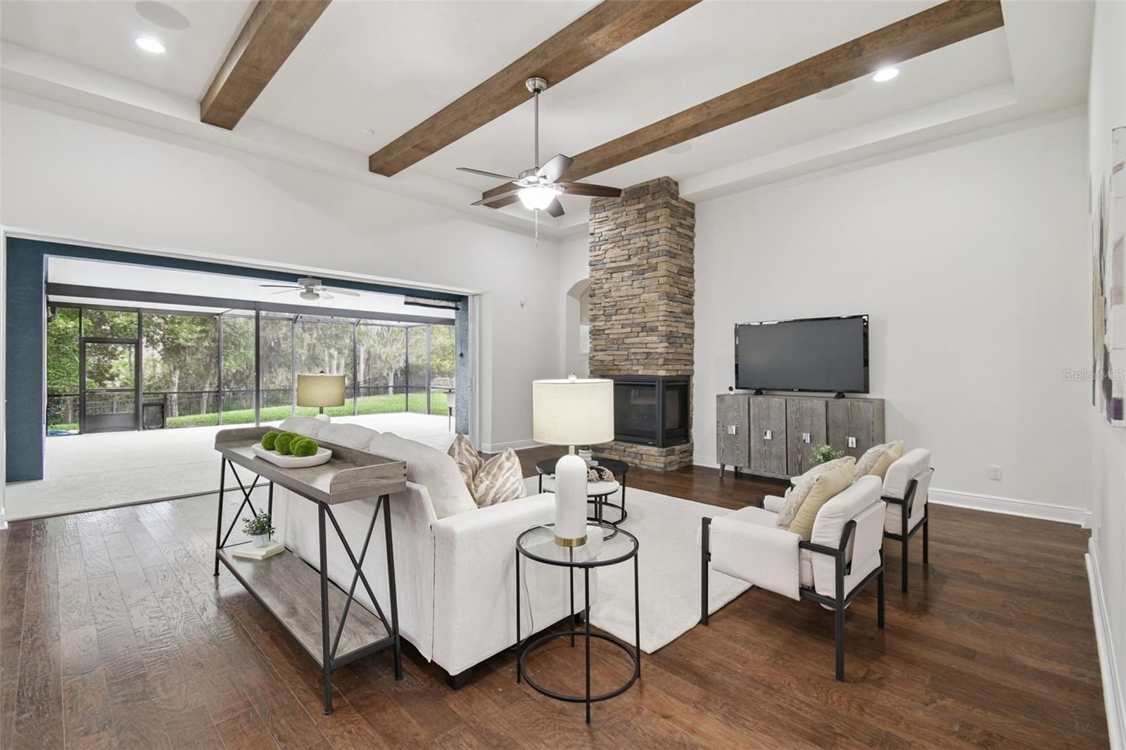 Built by HOMES BY WESTBAY, this stunning Craftsman-style LONGBOAT floor plan offers the ultimate blend of open-concept living and thoughtful design. Set on an OVERSIZED PIE-SHAPED Homesite with breathtaking CONSERVATION views, this home combines elegance, comfort, and smart functionality. Step inside to SOARING CEILINGS, and CROWN MOLDING throughout. The STONE GAS FIREPLACE and WOOD-BEAMED CEILING create a warm and inviting great room, while the CHEF’S KITCHEN is the true heart of the home, complete with a massive center island, GAS RANGE, STONE BACKSPLASH, built-in oven and MICROWAVE/CONVECTION COMBO, WINE FRIDGE, and abundant cabinetry and counter space. The versatile layout allows flexibility with a 4TH BEDROOM or optional FLEX space/office, and a substantial BONUS ROOM perfect for a media area, home gym, or game room. The primary suite features a spacious retreat with CUSTOM MODULAR CLOSET ORGANIZERS and a luxurious bath with upgraded tile, soaking tub, and separate shower. Outdoor living shines here! Enjoy the EXPANSIVE FRONT PORCH and EXTENDED COVERED LANAI, ideal for relaxing or entertaining while taking in peaceful nature views. Additional highlights include a NEW AC and DISHWASHER (2025), TRAY CEILINGS, WATER SOFTENER, massive laundry room with an abundance of counter and cabinet space, FRESHLY PAINTED INTERIOR and elegant finishes throughout. Plus, enjoy ease and peace of mind in the event of power loss with the GENARAC TRANSFER SWITCH !! Residents of Lakeshore Ranch enjoy resort-style amenities including a clubhouse, fitness center, three pools (resort, lap, and kiddie), basketball and tennis courts, pickleball, playground, and much more. Don’t miss your opportunity to own this exceptional home—schedule your private showing today! https://my.matterport.com/show/?m=ziuatrCh9mR&brand=0&mls=1&