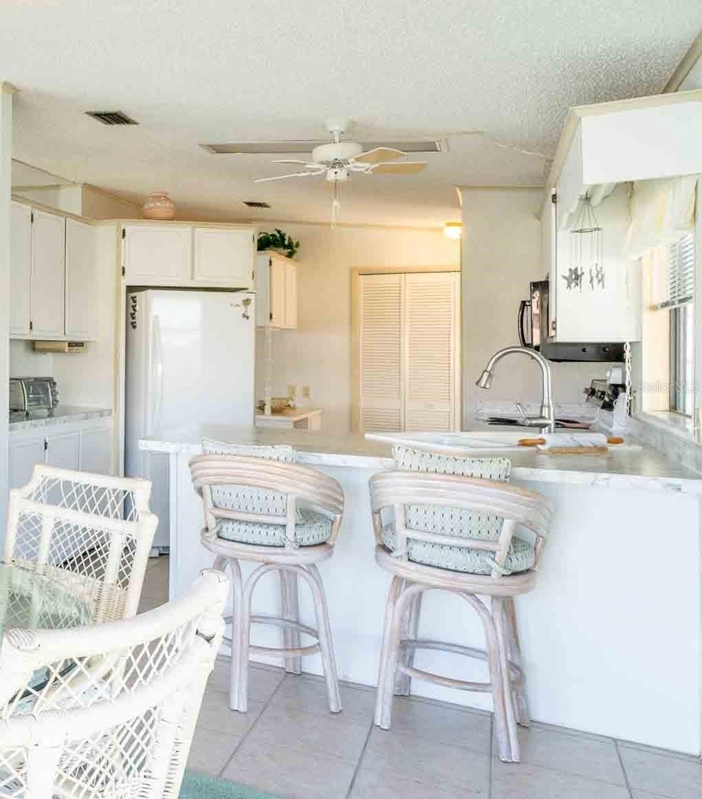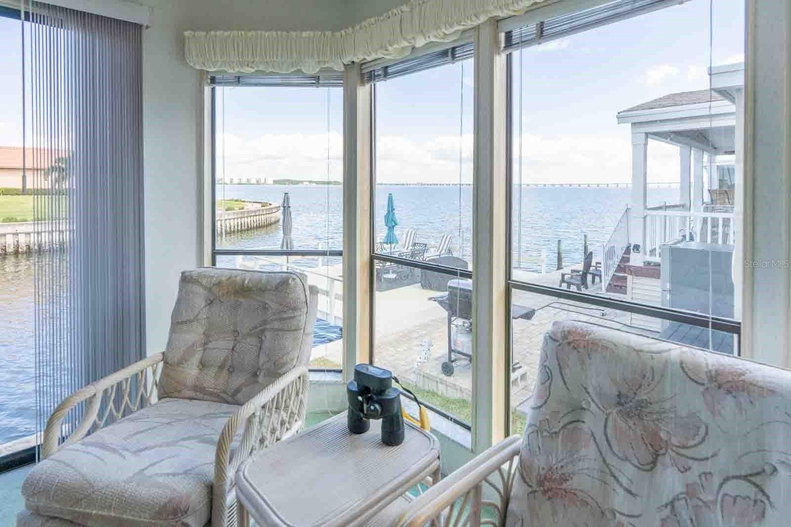 The bedrooms feature double hung windows that flood the space with natural light and refreshing coastal breezes. The kitchen, overlooking the bay, is perfect for enjoying your morning coffee while watching dolphins dance. The primary suite boasts two walk-in closets and a private bathroom, creating a serene retreat. Step outside just steps from the water to enjoy stunning sunrises and picturesque sunsets. Your amenities include a private fishing dock, carport, and easy access to two waterfront community piers, ideal for sunset watching, manatee sightings, or relaxing after a beautiful Florida day. One of these piers is just a few steps from your front door.