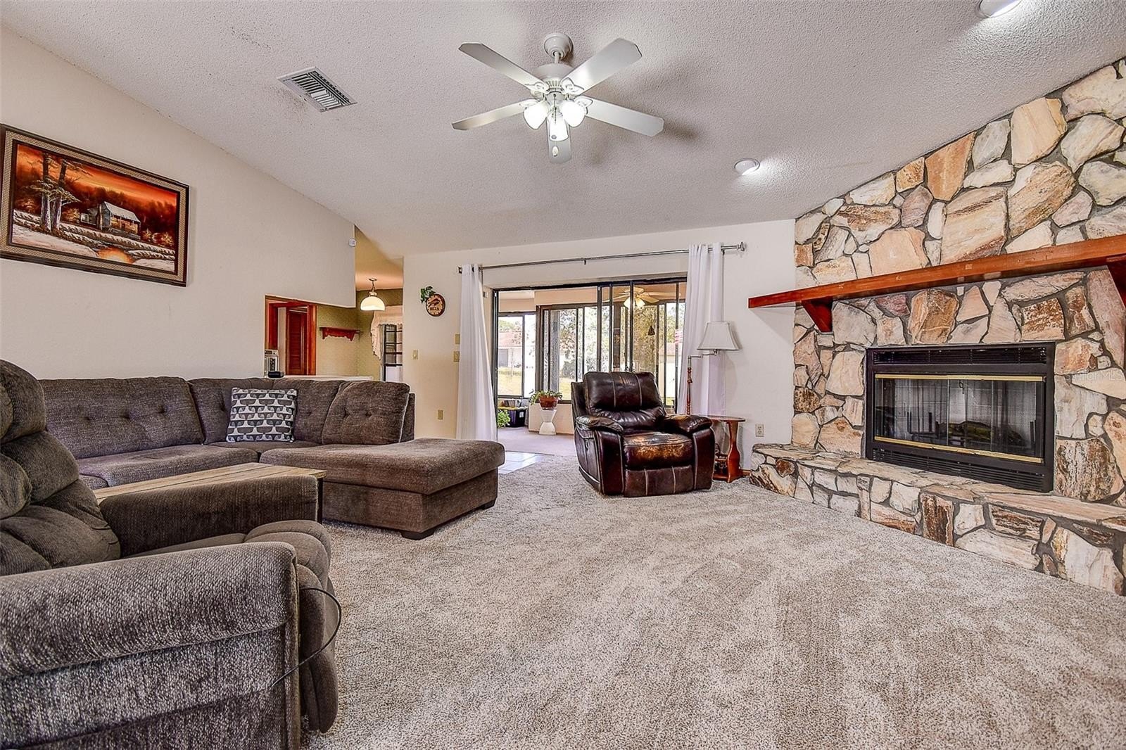 Welcome to this 3-bedroom PLUS HOME OFFICE with 2,150sqft living area, *PLUS a 280sqft WOOD FRAME OUTBUILDING (14x20) - great for SHE SHED, WORKSHOP or MANCAVE*. When you arrive you’ll find the home Nestled atop a high-elevation CORNER LOT approaching a HALF ACRE. NO FLOOD ZONE, NO HOA. Step inside the double door front entry to a OPEN-CONCEPT floorplan with HIGH CEILINGS in the main living areas. The GREAT ROOM features a cozy woodburning FIREPLACE and SLIDERS to a SPACIOUS LANAI. The chef’s kitchen is a true centerpiece, featuring stainless steel appliances, ample cabinetry and countertops, and a convenient breakfast nook as well as breakfast bar — perfect for casual dining or entertaining guests. You’ll appreciate the thoughtfully designed living area with SEVERAL FLEX SPACES — all on a single story, including a split bedroom plan providing privacy for the family. And ALL BEDROOMS FEATURE WALK-IN CLOSETS, so you’ll have plentiful storage space. Retreat to the large primary suite which features an en suite with garden tub, separate shower, and double vanity. Off the primary suite you’ll appreciate the HOME OFFICE with coffee bar (this room could also be a nursery). The other two bedrooms also have walk-in closets too. The guest bath with an extra-large vanity and linen closet has access to the Florida room. And the Home has an INSIDE LAUNDRY room with wash tub. The home also features a water softener. In the back you’ll find the OVERSIZED SCREENED LANAI — an inviting backdrop for relaxation and gatherings alike. This house is solid Concrete block construction with Roof replaced in 2016. NO HOA AND NO DEED RESTRICTIONS, so PARK YOUR BOAT or recreation vehicles. Positioned safely outside flood and evacuation zones. In the sought-after community of Royal Highlands, zoned for well-regarded Weeki Wachee school district and close to Hospital, restaurants, shopping, golfing, Pine Island on the Gulf of Mexico, Buccaneer Bay water park, Weeki Wachee Springs and the Withlacoochee River for kayaking, boating and natural springs. START ENJOYING THE FLORIDA LIFESTYLE in FLORIDA’S NATURE COAST! Close to Veteran's Expressway, 40 minutes to Tampa or head north to Crystal River. Within an hour’s drive of Tampa, Orlando, major theme parks. This rare opportunity presents a move-in ready home — a place where you can truly live, work, and play in harmony -- schedule your private showing today!