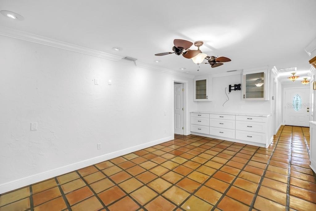 A brand-new chef’s kitchen dazzles with quartz countertops, premium stainless appliances, and thoughtful touches that make every day cooking feel indulgent. The family room invites both relaxation and connection with its wood-burning fireplace, custom entertainment wall, and elegant dry bar with glass display shelving. Sun-soaked and serene, the Florida room opens wide to the home's crown jewel — a heated saltwater pool with waterfall spa, lighting, and full automation for the ultimate in private retreat living.