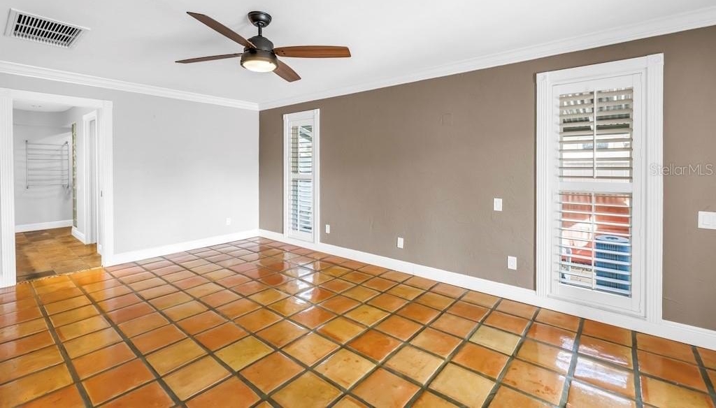 Every detail enhances both beauty and peace of mind: storm-impact windows, whole-house water softener, plantation shutters, crown molding, wide baseboards, and a dedicated storage room in the garage plus generator wiring.