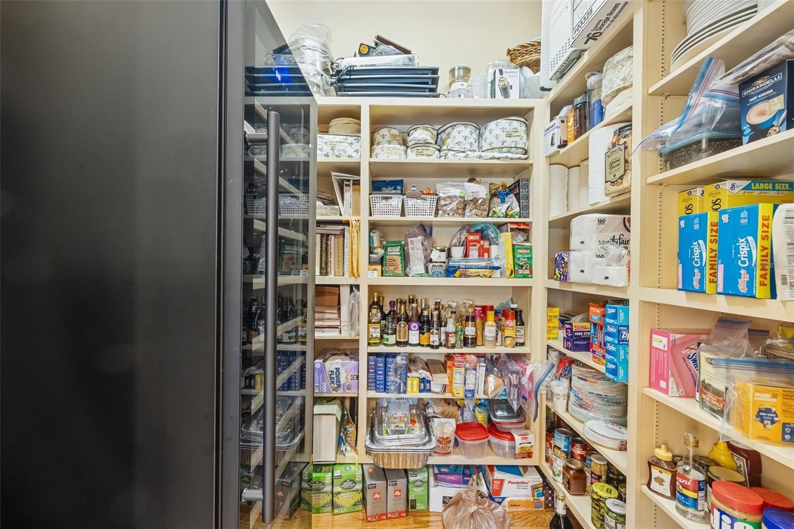Trash compactor, multiple wine refrigerators, and a large walk-in pantry