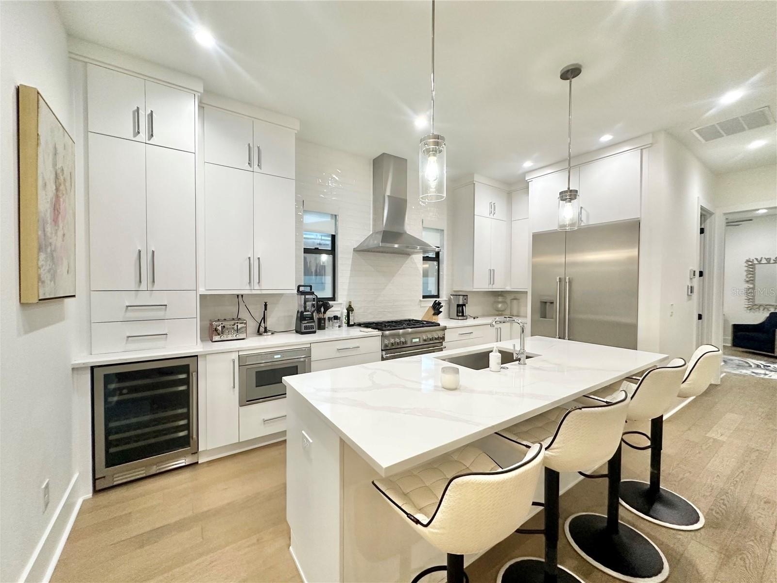 AWESOME LOCATION!! Just off Bayshore Boulevard and walkable to Hyde Park Village & SoHo—this stunning townhome is perfectly situated in one of the most coveted neighborhoods of South Tampa! Built by Brookshire Homes 5-bedroom, 4.5-bath, 2-car garage residence combines luxury, comfort, and exceptional design. Step outside to your custom-designed backyard oasis featuring a heated in-ground pool spa with lights and bubbles, surrounded by low-maintenance turf grass and a paver driveway and walkways for a clean, elegant look. Entertain effortlessly on the covered patio with an outdoor TV, perfect for relaxing evenings or game days by the pool. Inside, the spacious gourmet kitchen is a chef’s dream, complete with a large island, marble countertops, Thermador appliances including a 48" built-in refrigerator, and a Silhouette wine cooler. Walk in pantry and storage room with custom barn door. The first floor offers a private guest suite, while the second floor features a luxurious primary suite with a large walk-in closet and a spa-like bath with a freestanding tub, dual vanities, and a walk-in shower with a bench. Three additional bedrooms, each with walk-in closets, and a convenient laundry room with a sink complete the upper level.Throughout the home, enjoy White Oak 5" hardwood floors, 7-1/4" baseboards, impact glass windows, and 15 SEER split HVAC systems with programmable digital thermostats. This home truly has it all—luxury finishes, thoughtful design, and an unbeatable location just steps from Bayshore Boulevard and the best of South Tampa living! AAA+ rated school district, Mitchell, Wilson and Plant!!!