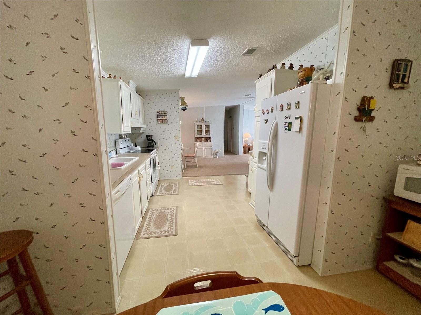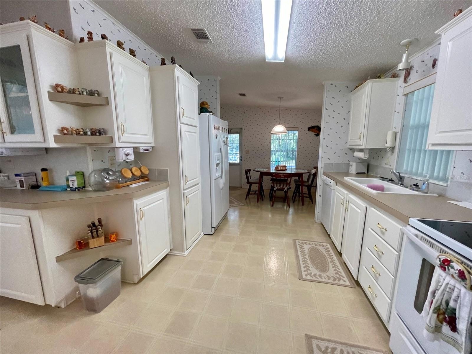 This property includes the vacant lot next door on the east side of home which is .23 of an acre, which makes this property right at 1/2 acre. Home is move in ready, built 2004 with 1440 heated sf... high and cathedral ceilings... Walk in the front door off the porch, you will find the breakfast room which includes a pantry and inside laundry closet, then you walk into the large kitchen with ample amount of cabinetry... large great room area with a dining space... split bedrooms, Primary suite is on the front end of the home, which includes a large walk-in closet, and a huge on-suite bath area with a walk-in shower AND a garden tub. The 2nd bedroom is on the other side of home, which includes a walk-in closet and the 3rd bedroom is just across the hall next to the guest bathroom. Home features on the west side of the home a screen room with vinyl windows, AND a covered lanai area AND a detached garage with workshop 12x24. Roof - 2022 and AC is approx 2015... Road is a dead-end road, so less traffic. Property is less than 1/2 mile to Lake Panasoffkee. There is a vacant lot across the street for sale as well from the same owner, and lot on the west side is wooded. Home has a golf cart and riding lawnmower witch could be negotiated depending on offer.