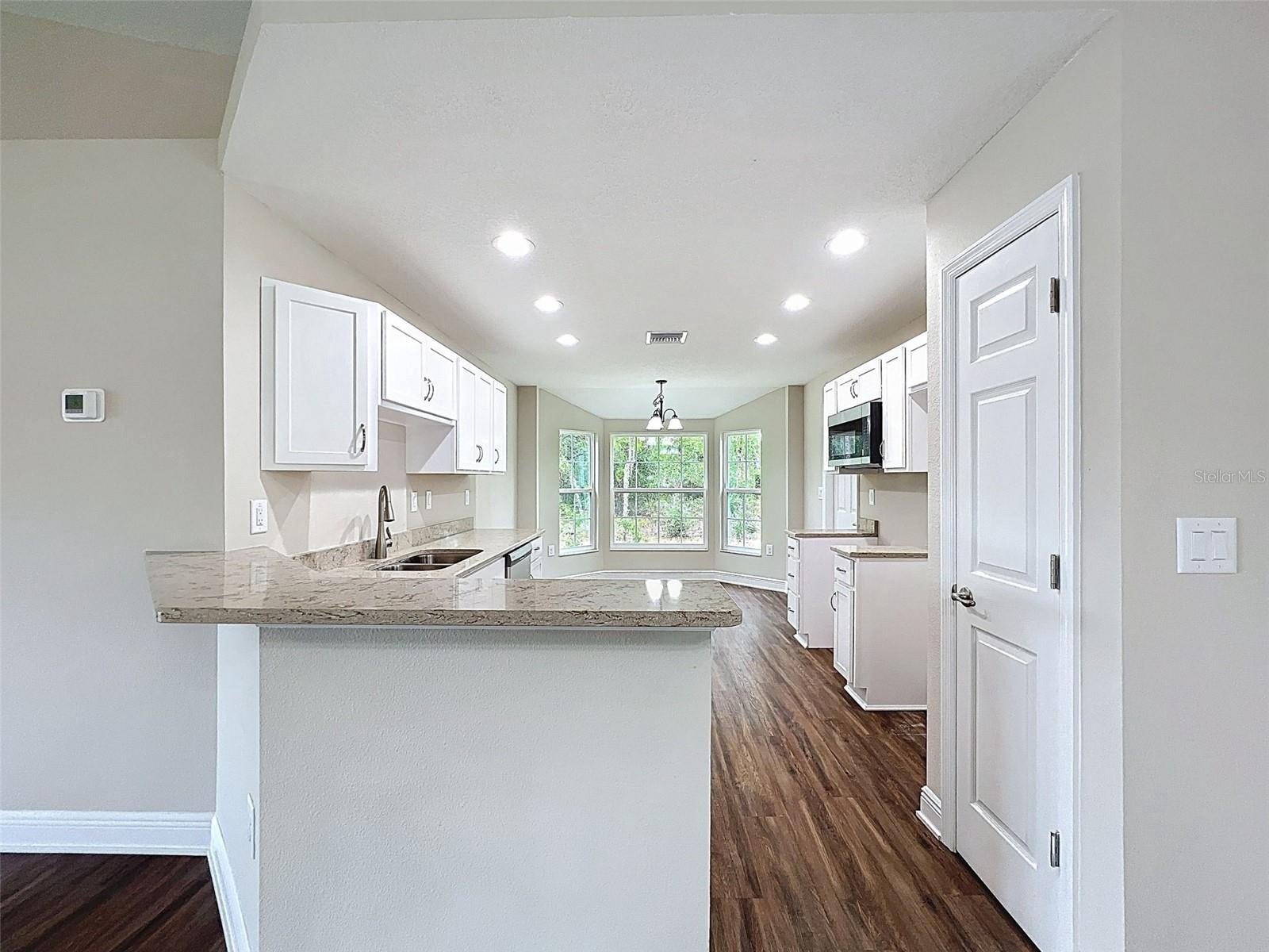One or more photo(s) has been virtually staged. This beautiful new construction home in Citrus Springs is nearly 1,600 SQFT and packed with features! It boasts cathedral ceilings with plant shelves, an oversized living room, and solid surface countertops. The kitchen includes a cozy nook, a pantry for extra storage, and plenty of natural light. The primary bedroom offers a spacious walk-in closet and a full tile step-in shower, enhancing both comfort and functionality. Outside, the home is equipped with a full irrigation system, making lawn care simple and efficient. Conveniently located just 10–15 minutes from Dunnellon and the scenic Rainbow River, 15–20 minutes from Crystal River and the Gulf, and 10–15 minutes from the new Shoppes at Black Diamond—featuring Target, Starbucks, and more—this home offers the perfect balance of peaceful living and accessibility.
