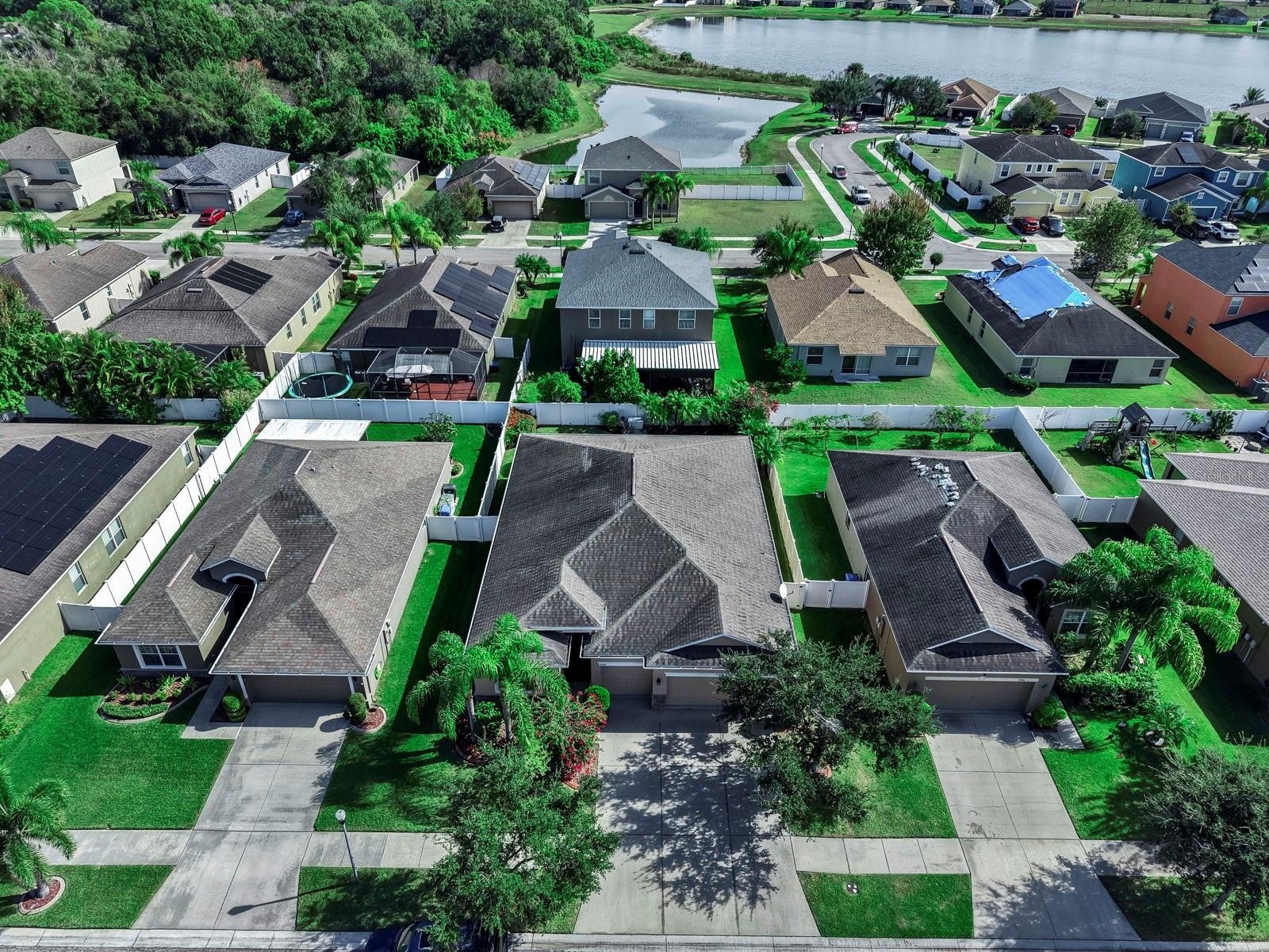 Welcome to this beautifully updated home with 4 spacious bedrooms, 3 full bathrooms, a rare 3-car garage, screened-in lanai, and a fully fenced backyard located in the desirable community of River Bend in Southshore Hillsborough County. The curb appeal is enhanced by thoughtfully designed landscaping that adds vibrant pops of color against the home's elegant neutral exterior. This single-story residence offers over 2,200 sq ft of open living space with a thoughtful 3-way split bedroom layout that includes TWO ENSUITES (primary ensuite AND a guest ensuite), in addition to two more bedrooms that share a hall bath with dual vanities, tub with shower. As you step through the front door, the foyer opens up to the large kitchen, the dining room, the living room and breakfast nook (or bar area). The expansive kitchen - designed with entertaining in mind - features a convenient island, upgraded stainless steel appliances, granite countertops, 42-inch espresso cabinetry, is a chef's dream and a gathering spot for family and friends. All of the formal areas and primary ensuite features crown molding. Retreat to the PRIMARY ENSUITE and discover the epitome of comfort with a huge walk-in closet. Enjoy the convenience of dual sinks, private water closet, accessible shower with fold down seat and unwind in the generously sized garden tub. The private GUEST ENSUITE off the foyer, has a full bathroom with a tub with shower, full size closet, and is the perfect setup as in-law suite, overnight guests or home office. With two additional bedrooms and one more full bathroom with dual sinks, tub with shower, this home is thoughtfully designed to accommodate both family and guests. 18-inch ceramic tile throughout the main living areas— and carpet only in the bedrooms. The inside laundry room includes a utility sink and shelving. The third bay in the garage has been converted into a temporary non-permanent, non-structural workshop. Hurricane shutters come with the home. Off the living room, sliding glass doors lead to the fully fenced in backyard oasis with mature palms. Enjoy the serene ambiance on your screened-in covered lanai—a perfect setting for gatherings and relaxation. Recent upgrades include a hybrid water heater (2024), garage door opener (2024), attic stairs (2024), refrigerator (2023), dishwasher (2023), washer and dryer (2023). There is a second set of washer and dryer hookups in the garage, where the previous owners moved the washer and dryer into the garage, however the current owners moved them back into the inside laundry room (2023). Previous updates include a new HVAC system and water softener (2022). Located just a short walk from River Bend’s amenities including a brand new resort-style swimming pool, splash pad, tennis/pickleball courts, basketball courts, clubhouse, fitness center, playground, fishing ponds, and a dog park—a complete package for a vibrant and fulfilling lifestyle—all with a low annual HOA. Conveniently near Tampa, MacDill Air Force Base, St. Pete, Bradenton and Sarasota. Whether you're traveling for work or leisure, you're only 45 minutes from both Tampa International Airport, St. Pete/Clearwater Airport and Sarasota-Bradenton International Airport, giving you flexibility and ease of travel. This location truly combines convenience, lifestyle, and access to all the Gulf Coast has to offer. This home is move-in ready, exceptionally maintained, and offers outstanding value!