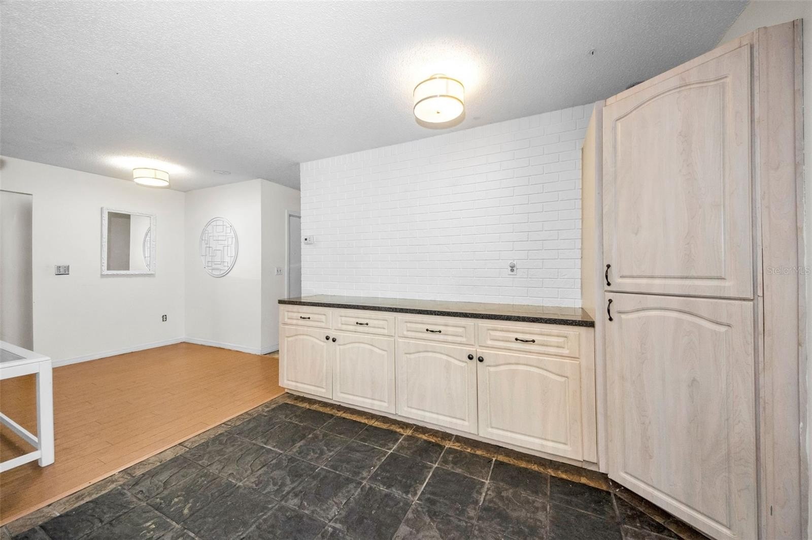 Single-story 3-bedroom, 2-bath, 2-car garage home in the Beacon Woods golf community, offering a flexible split-bedroom layout, multiple living areas, and an expansive screened outdoor living space. A wide covered front porch with double-door entry opens to the main living room, where you have room for seating, media, and conversation areas. Just beyond is the dining area and additional family room, creating a natural flow for everyday living or hosting guests. The centrally located kitchen features wood cabinetry, solid-surface counters, black appliance package, double stainless-steel sink, breakfast bar, and a pass-through window to the bonus room, making it easy to serve snacks or drinks. A separate breakfast nook with large windows overlooks the screened porch and deck.