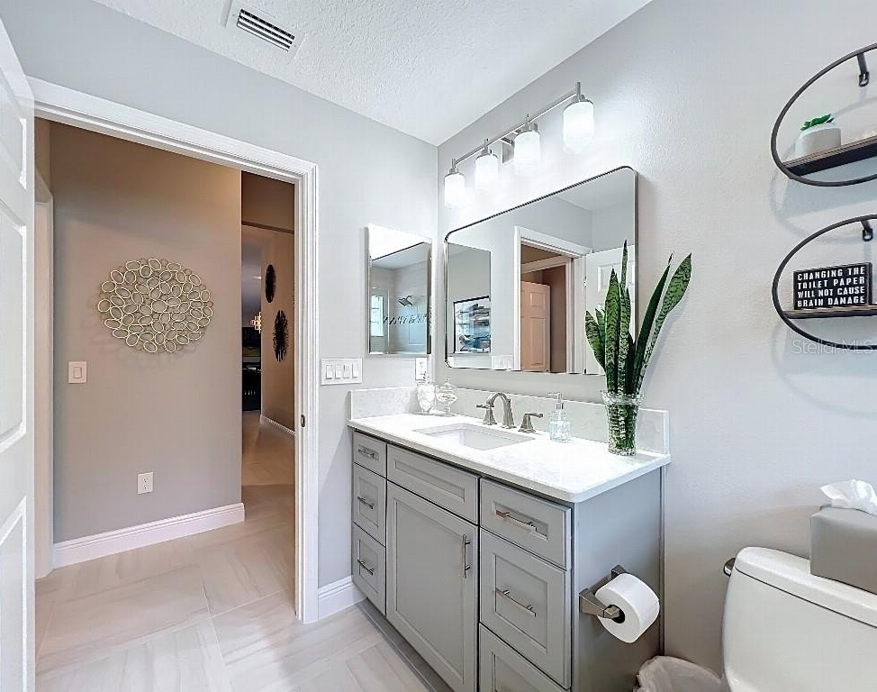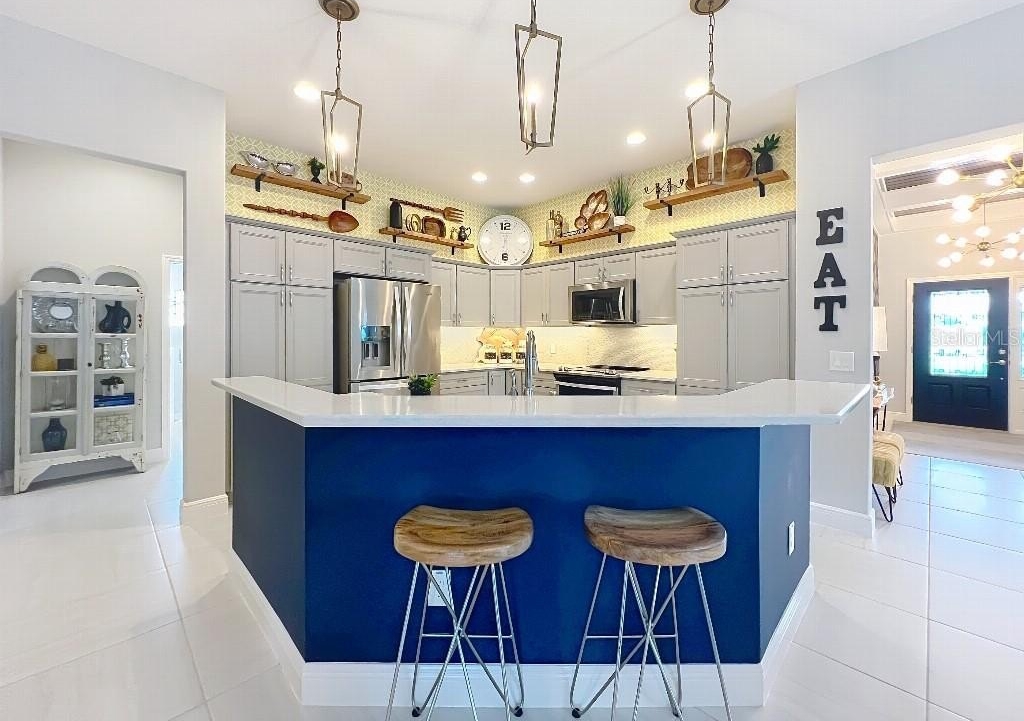 Beautifully updated Bayberry Model in the sought after Village of Fenney! This 3 bedroom, 3 bath, pool home offers 1,906 sq. ft. of modern living with quartz countertops, updated light fixtures, no carpet, glassed-in lanai, and an open kitchen with roll-out trays and upgraded laundry room. Relax in your private 2025-built pool with 3 waterfalls and privacy walls. Additional highlights include insulated garage doors, radiant barrier roof decking, a 2-car + golf cart garage, and a fresh exterior paint job (July 2025). Prime location—walking distance to Fenney Rec, Fenney Grill, nature trails, pickleball courts, Spanish Moss sports pool, and 5 minutes from Red Fox and Grey Fox golf courses, with Brownwood, Eastport, and Sawgrass just a short golf cart ride away. Bond balance under $25K. Furniture negotiable.