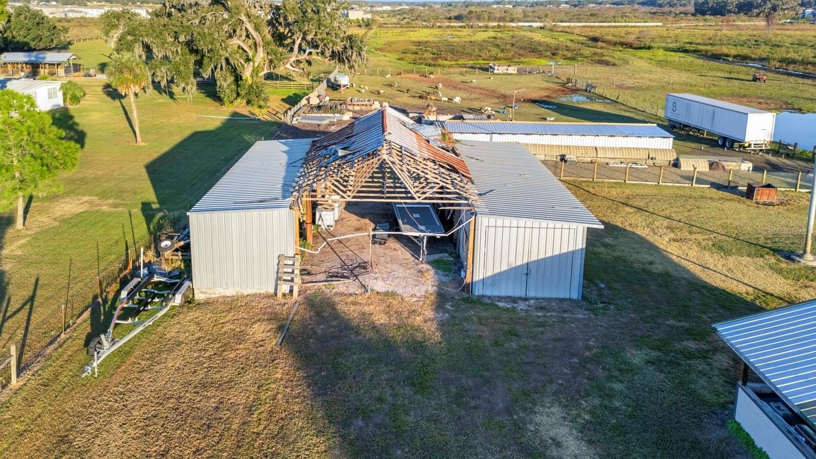 Welcome home to this private 2-bedroom, 2-bathroom retreat offering peaceful country living with easy access to town, sitting on just under an acre of land, tucked away behind a gated entrance and accessed by an easement driveway, offering peace, privacy, and seclusion. You cannot see the home from the road which is perfect for those seeking a quiet, secure lifestyle. Inside, you’ll find a bright open-concept kitchen and living room ideal for both everyday living and entertaining. Both bedrooms feature spacious walk-in closets, and the primary suite includes its own en-suite bathroom for added comfort. A convenient laundry area sits near the back door, leading to the impressive 36’ x 40’ garage. The garage includes three separate rooms, two of which are climate-controlled, one with a window A/C unit (currently used for a poker room, also perfect for an office, or flex space) and another with a mini-split system. Beyond these is an additional workshop, giving you even more room for tools, projects, or storage. Garage includes the existing beam and trolley (motor does not convey), offering an ideal setup for mechanics or anyone needing heavy-duty workspace. Behind the home is a metal-frame barn, offering a solid foundation for agricultural, equipment-storage, or workshop use. The structure features two enclosed side bays with metal roofing already in place and an open center bay ready for new roofing and customization. The barn sits on a cleared area with easy vehicle access and offers ample room for parking trailers, machinery, or supplies on the property. Utilities are nearby, and the layout allows for flexible future improvements such as stalls, storage bays, or a full workshop build-out. Perfect for buyers looking for a project with great structural bones and the opportunity to finish the space to their specific needs. Adjacent pastures seen in photos are not part of the property being sold. Just minutes from downtown Plant City, I-4, Tampa, and Orlando, it offers both tranquility and convenience. This one-of-a-kind property offers ultimate privacy, flexibility, and room to grow. An opportunity you won’t come across often.