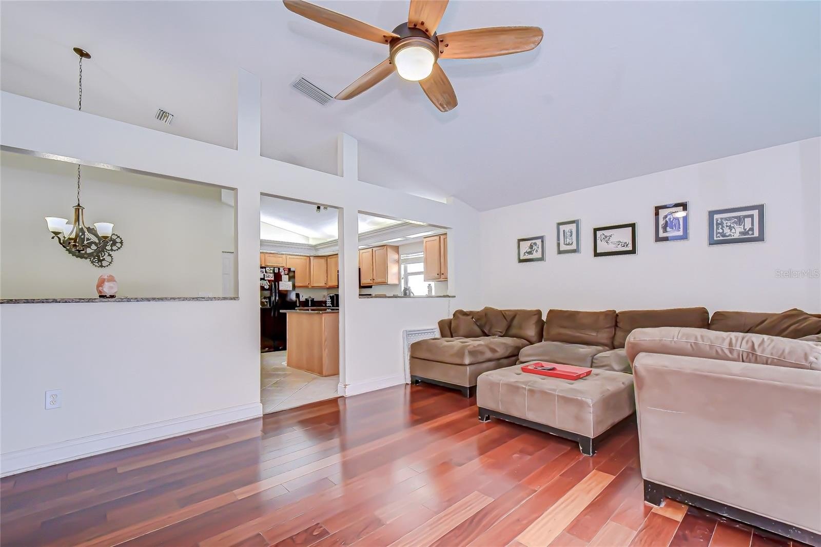 One or more photo(s) has been virtually staged. You are cordially invited to explore this charming single-story pool home in the sought-after Villa Rosa community. This thoughtfully designed residence boasts three bedrooms, two bathrooms, stunning conservation and partial pond views. As you step into the grand foyer with cathedral ceiling and 18-inch ceramic tile, you'll immediately feel at ease in the bright and airy atmosphere filled with natural light. The open floor plan seamlessly connects each room, with two bedrooms and a bath forming their own wing to the right. The home features oak cabinetry, granite countertops, a spacious formal dining room, and an eat-in kitchen that provide ample family space. The great room at the back of the home is adjacent to the primary bedroom suite. Outside, the screened-in pool with spa is perfect for hosting gatherings and barbecues overlooking conservation & a pond, through the sizable backyard. New Roof in 2025.