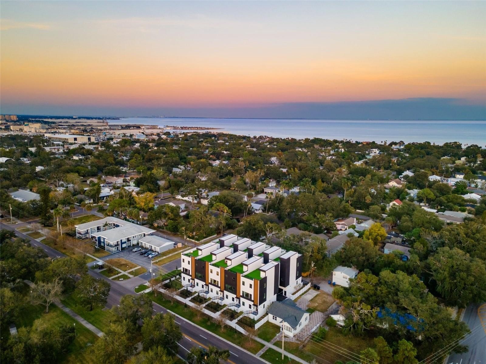 MOVE IN READY! Located in Historic Old Southeast on the urban edge of Downtown St. Petersburg, 4TH STREET GARDENS is a rare, private gated community of sophisticated townhomes, each featuring the unique benefit of a fenced yard. These luxurious residences boast expansive rooftop terraces of nearly 1,000 square feet, offering breathtaking views of the Downtown skyline and St. Petersburg horizons, where you can enjoy spectacular sunrise or sunset skies from your own home. This end unit has more windows with southern exposure and an oversized fenced yard to garden or room for your pets! Every detail is curated to ensure a seamless blend of elegance and functionality, with each residence offering 2,280 square feet of living space, three en-suite bedrooms, and an opulent owner's suite complete with a spa-inspired dual shower and a generous walk-in closet. The spacious garage features soaring 16-foot ceilings, and all homes are elevated to maximize views of the park, downtown St Pete, and stunning sunsets from the roof deck. At the heart of the home lies a stunning Euro-contemporary style kitchen that flows seamlessly into the expansive living area, while 10-foot ceilings enhance the open concept design, creating an atmosphere of effortless sophistication. At 4TH STREET GARDENS, you are purchasing more than a home; you are embracing an elevated lifestyle within an exclusive community graced by one of St. Petersburg's rare Augusta brick-lined streets. Perfectly situated, you'll enjoy effortless access to the vibrant heart of Downtown St. Petersburg, with its renowned arts and music scene, eclectic dining, and exciting nightlife. You are also just moments from boat ramps, picturesque waterfront parks, serene kayaking spots, the historic Old Southeast neighborhood, lush nature preserves, and the renowned St. Petersburg Tennis Club.