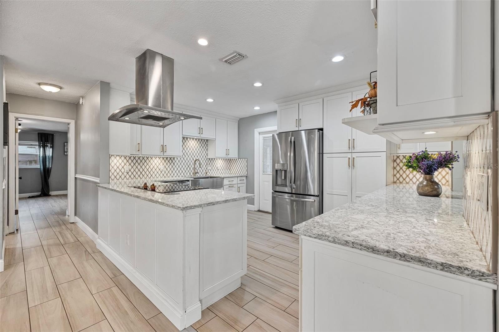 From the moment you arrive, the gorgeous ranch-style curb appeal and sprawling yard make this home feel like your own private retreat. Inside, the split floorplan offers both comfort and flexibility. The cozy family room features a beautiful fireplace, while the additional front room is perfect as a formal sitting room, home office, den, or playroom—whatever suits your lifestyle. The kitchen is a showstopper with gorgeous granite countertops, stainless steel appliances, custom backsplash, and a big farmhouse sink, ideal for cooking and entertaining.