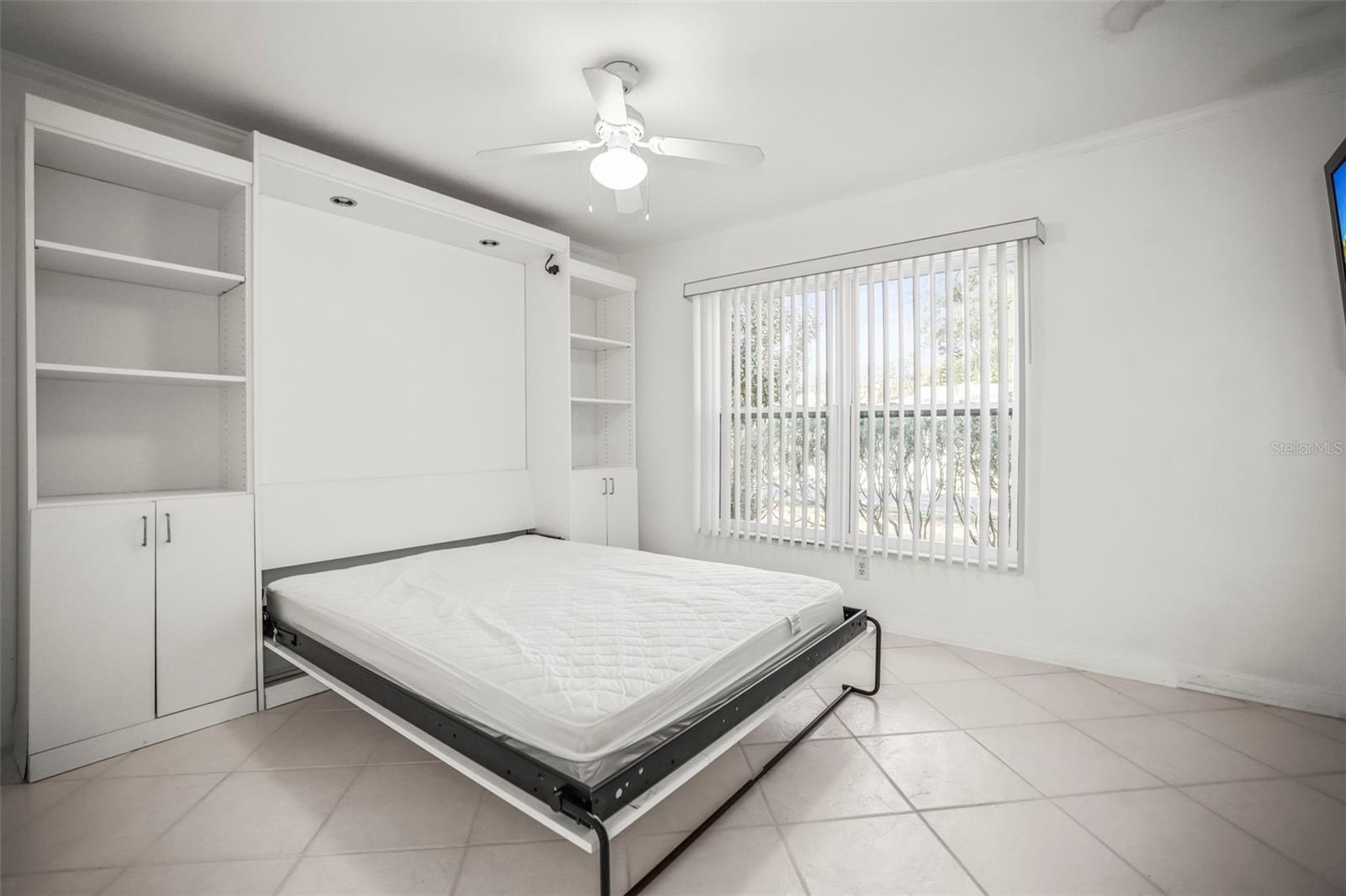 The primary suite includes a walk-in closet and private en-suite bath, while the generously sized second bedroom and full guest bath provide comfort for visitors. A large screened-in porch with a spa overlooks the serene backyard, where frequent sightings of birds, owls, and deer make every day feel like a retreat.