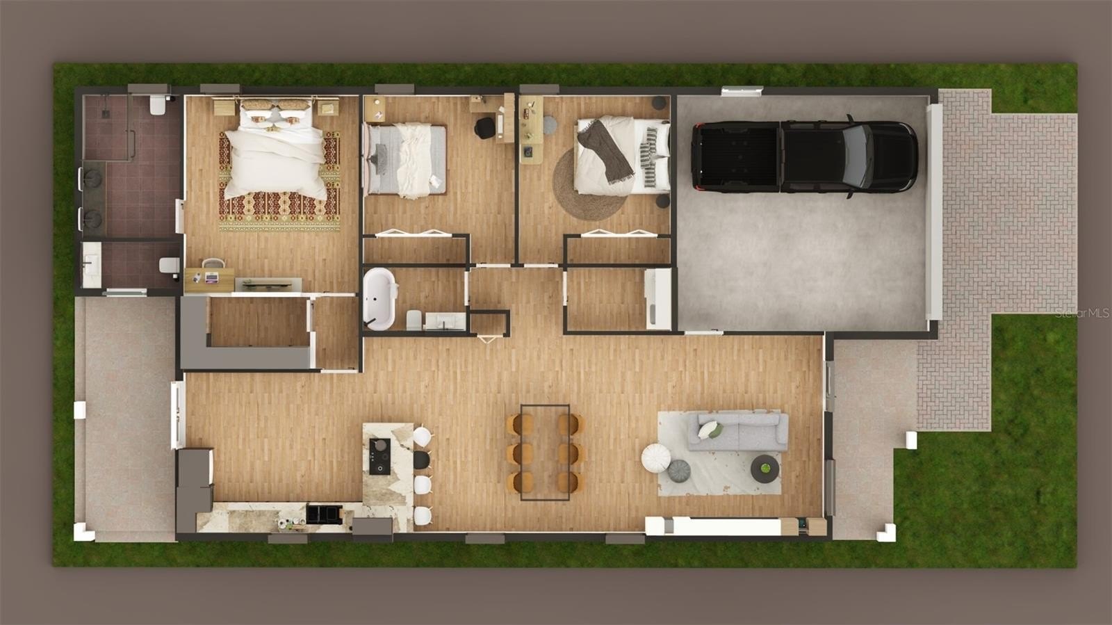 Under Construction. This stunning 3-bedroom, 2.5-bathroom home, featuring a spacious 2-car garage, is currently under construction and will be ready for move-in by January 31st. The design showcases soaring ceilings adorned with elegant tray detailing, creating an inviting atmosphere that enhances the expansive open floor plan. Large windows flood the living areas with natural light, beautifully accentuating the modern aesthetic throughout. The chef-inspired kitchen is a culinary delight, featuring sleek quartz countertops with a striking waterfall edge and a generous island that is perfect for entertaining guests. The owner's suite is a true retreat, complete with dual sinks, a frameless glass shower, and an impressive walk-in closet with ample storage. Situated on over half an acre, this property provides plenty of room for entertaining and outdoor activities, making it an ideal setting for gatherings. The unique location offers the freedom often sought in a home – with no restrictive HOA, you can truly make this space your own, enjoying the dual street access for added convenience. Privacy abounds as the lot is oversized, allowing you to enjoy your surroundings without feeling crowded. You’ll be just moments from downtown, the picturesque Tampa Bay Pass Canal, and a variety of malls and restaurants, and you'll have easy access to major highways. This remarkable home combines modern luxury with an unbeatable location—why settle for an older home when you can enjoy the advantages of new construction?