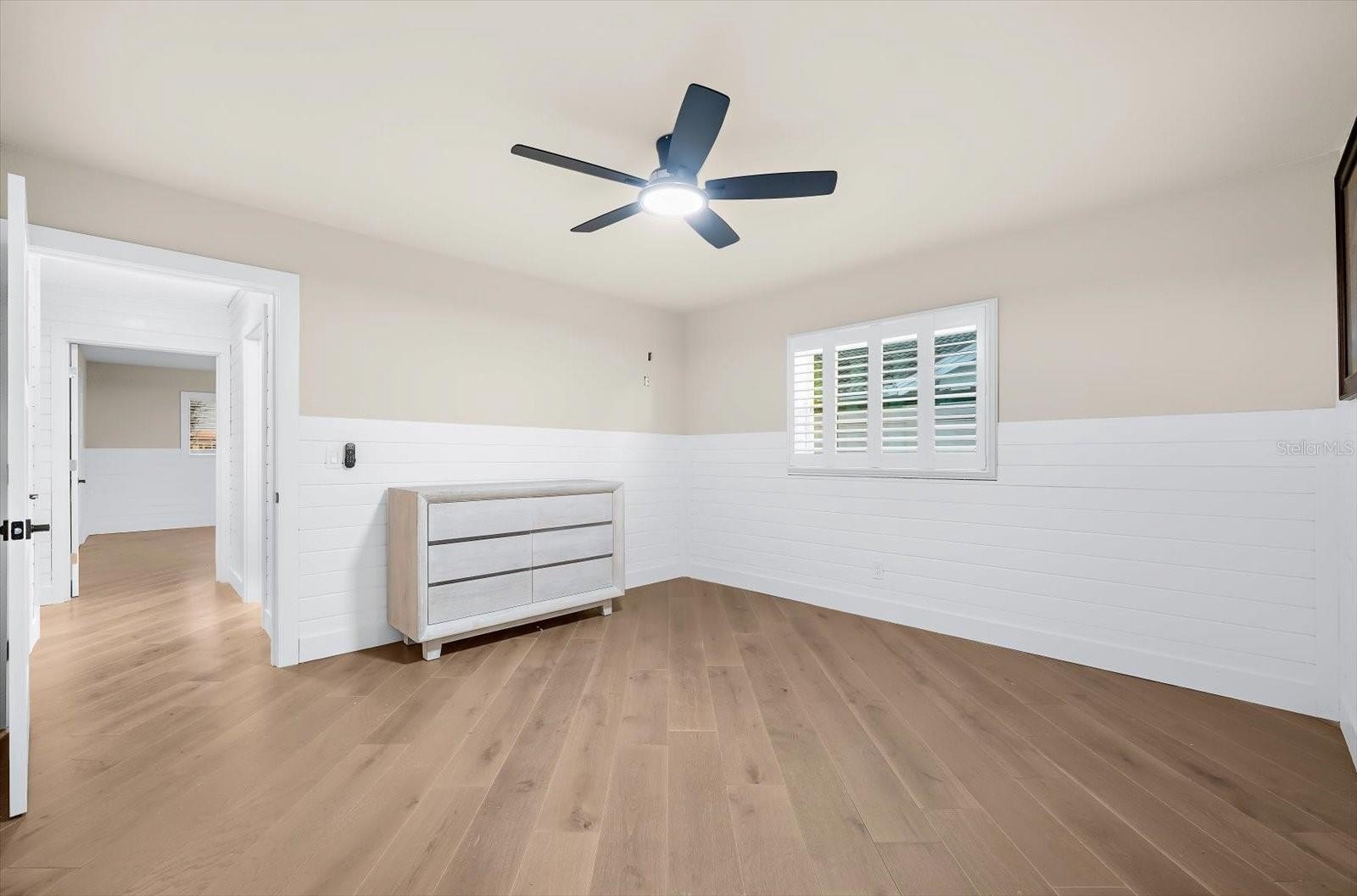 Inside, the home offers an open and flowing floor plan with multiple gathering spaces, including a formal living area, family room, and a dining space adjacent to the kitchen. Large windows, sliding doors, custom shiplap, level 5 drywall finish on both walls and ceilings, Anderson Tuftex Engineered Hardwood floors and a bright interior color palette accentuate the stunning water views. The chef inspired kitchen exudes unparalleled sophistication featuring expansive counter space and a striking center island finished in Cristallo Gold quartzite, with fully LED-backlit luminescence seamlessly controllable via Bluetooth. A sleek, updated ZLINE appliance package in a stainless- black monochromatic finish complements the premium white oak cabinetry, culminating in a truly high-end, modern culinary masterpiece. A split-bedroom layout provides privacy, while additional features such as a gas fireplace and wet bar enhance the home’s functionality.