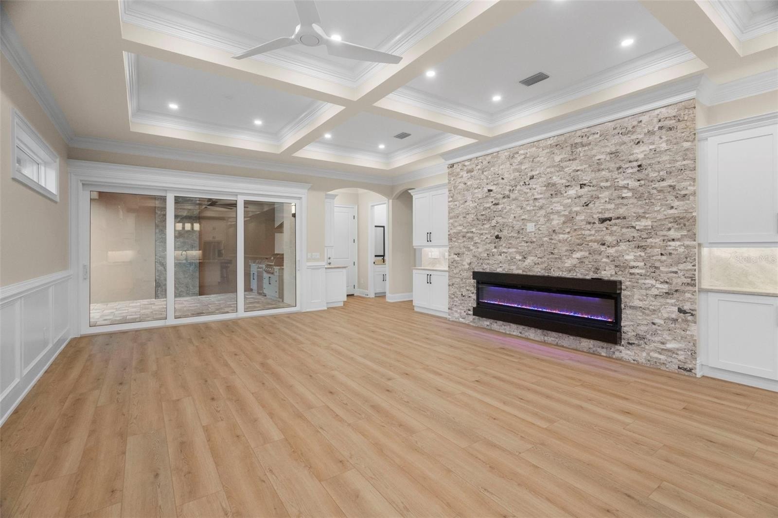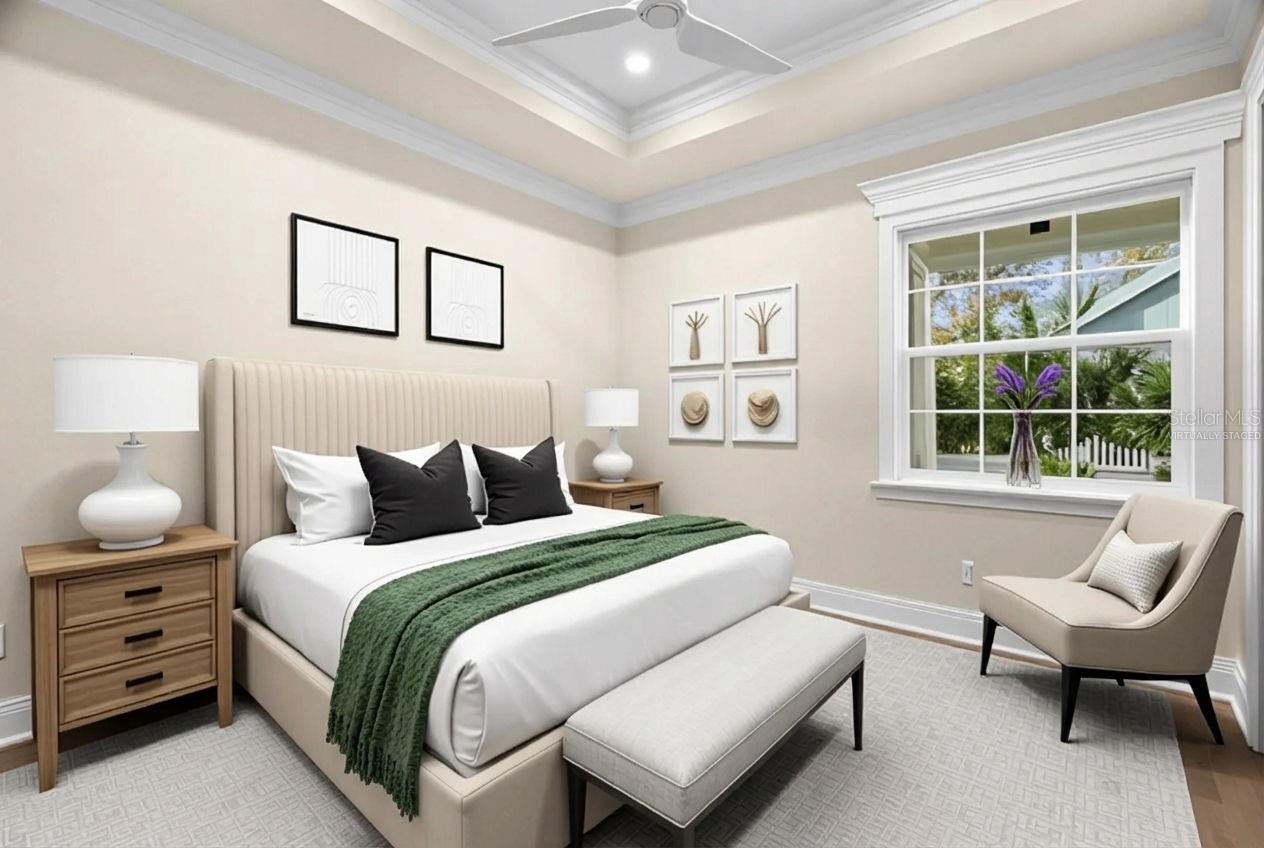 As you approach the gated entrance and large front porch with its custom stone accents perfect for sitting and relaxing, you will immediately notice the professional landscaping and maintenance free turf package that gives this home tons of curb appeal. Also very evident will be the quality workmanship and pride of ownership that is part of everything this home offers. Upon opening the inviting front door, you will be drawn into the open floorplan of the inviting main living space including the large dining area, a wet bar that boasts an icemaker and a wine fridge, and a HUGE kitchen island that seats 6 is so perfect for ENTERTAINING! This home is equipped with 3 kitchens. The main Chef’s kitchen is outfitted with a 36” Kitchenaid top of the line gas cooktop and Kitchenaid Double Wall Oven. The countertops and full backsplash are the trending Taj Mahal Quartzite. Also included is a spectacular range hood, solid wood -soft close cabinets, upgraded dimmable undercabinet lighting. The upper cabinets have glass doors with custom lighting. The second kitchen or scullery is a true home cooks dream. Tucked away from the rest of the home it’s a space that is private and provides a way to have a “working kitchen” while if you desire, keeping the main kitchen pristine on a day-to-day basis. The third kitchen is in the screened lanai and features a full large sink, bar refrigerator, granite countertops and a Blaze Grill including a hood vent. The Primary Suite of this home is amazingly designed and decorated including a walk-in closet and separate makeup vanity. The luxurious primary bath includes a large stunning shower & soaking tub, 2 separate large vanities with abundant storage, and a private water closet. You will truly feel like you live at a spa every day!