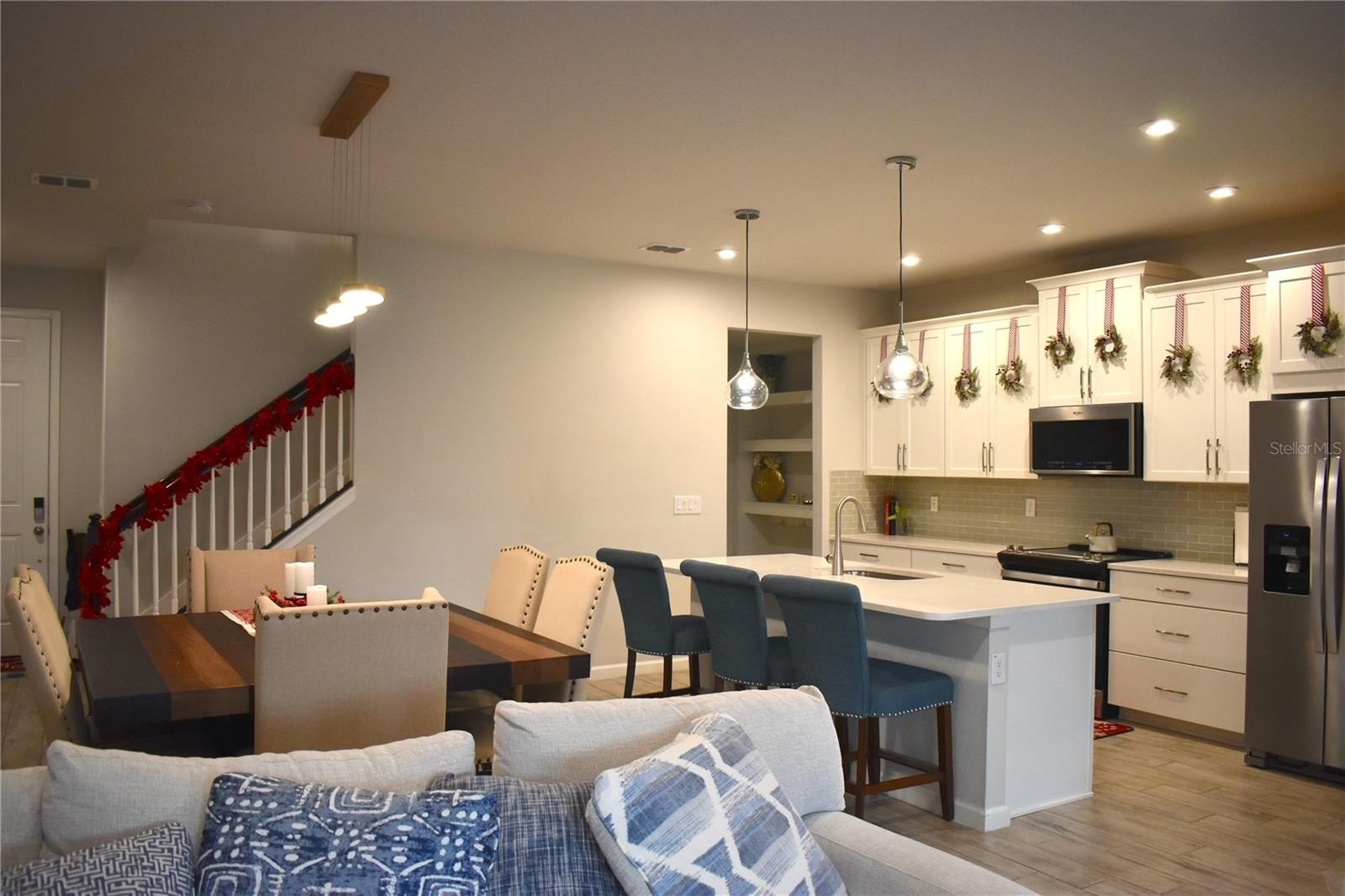 This beautifully upgraded Sebring townhome in the gated Parkview at Long Lake Ranch community (Lutz/Tampa Bay) offers 3 bedrooms, 2.5 bathrooms, a loft, and a 2-car garage across approximately 2,243 sq. ft. Built in 2022, the well maintained home features an open-concept main level with 7" x 22" plank tile flooring, abundant natural light, and a seamless flow between the kitchen, dining area, and great room. The designer kitchen includes 42" Sonoma cabinets with crown molding, Quartz countertops, Stainless steel appliances, Large center island with breakfast bar plus Walk-in pantry and glass subway tile, with built in pull out garbage receptacle. Plus, screened lanai with brick pavers is accessible through large triple sliding doors that brighten the living room with upgrade in built in heated fireplace. Upstairs, you’ll find spacious loft ideal for an office, playroom, or second living area, private primary suite with his/hers walk-in closets and a large bathroom with upgraded his/hers vanity sinks and walk-in shower. The additional two bedrooms, each with walk-in closets are decent sized along with the home having a conveniently located laundry room with plenty of space for related storage. For added convenience, upgraded smart-home features enhance the lifestyle with more efficiencies, and boasting hurricane shutters and alarm panel for extra security and protection. Parkview at Long Lake Ranch offers maintenance-free living with amenities including a resort-style pool, dog park, playgrounds, and gated entry, and is close to A-rated schools, major highways, shopping, new restaurants, airports, and Tampa Bay’s top beaches. This nearly new, move-in-ready townhome blends elegance, modern convenience, and a prime location—perfect for effortless Florida living. Schedule a tour today!