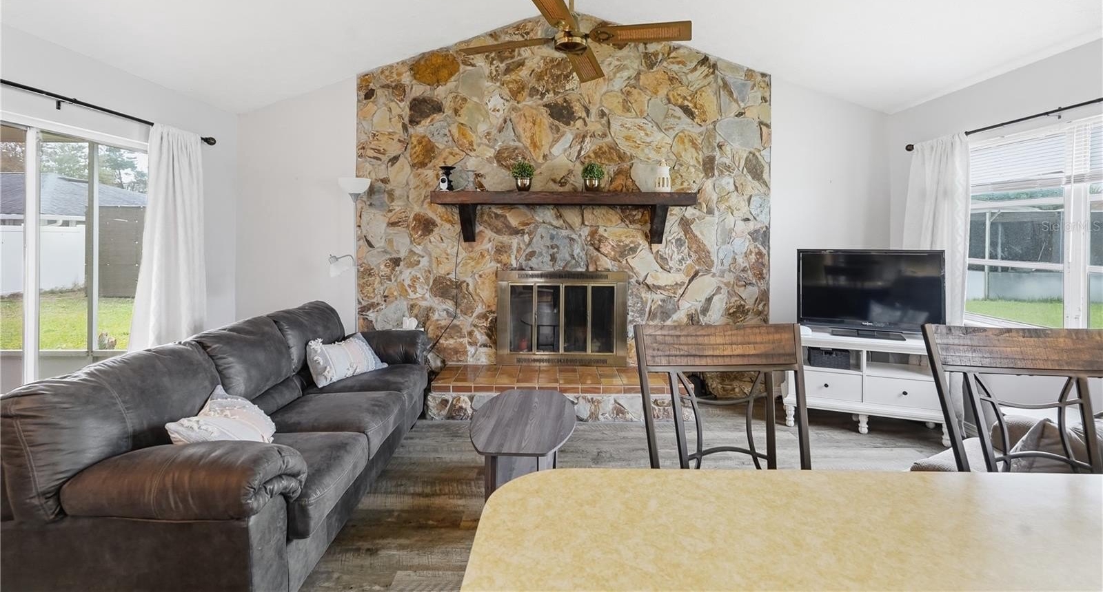 Major updates provide peace of mind, including a new roof installed in 2022 and a new air conditioner in 2019. The thoughtful layout includes generous living and dining areas, well-appointed bedrooms, and plenty of natural light throughout.