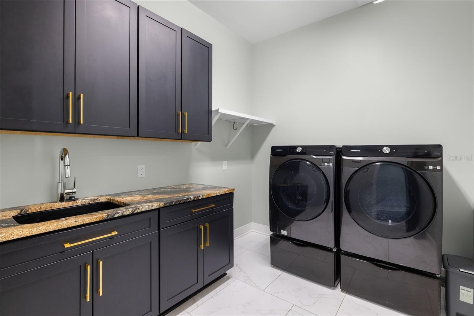 The OVERSIZED THREE-CAR GARAGE features extra-tall doors, epoxy flooring, and 7+ GFI outlets—perfect for workshops or specialty vehicles.