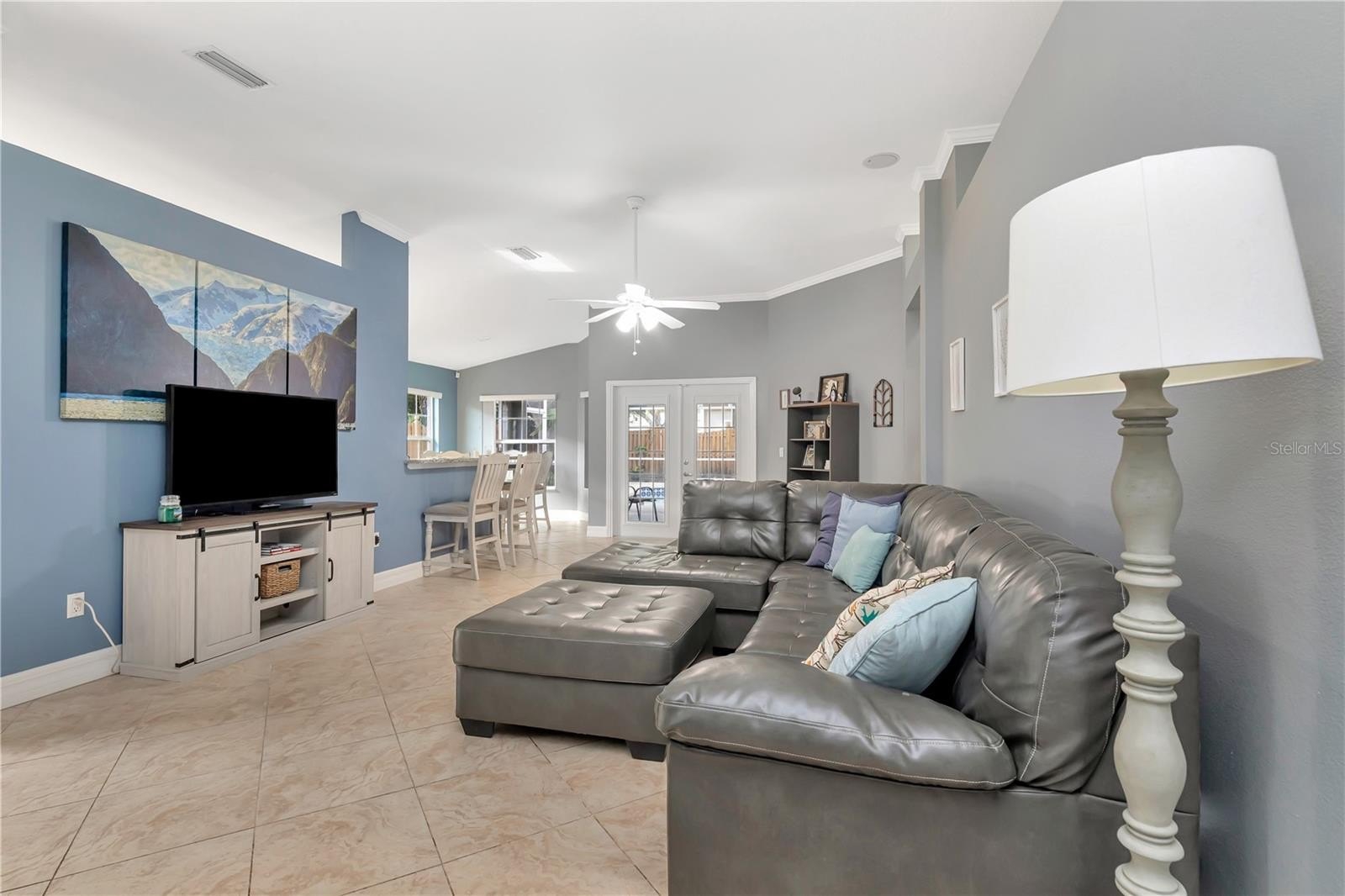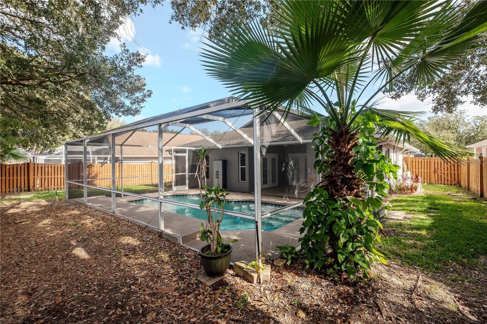 Welcome to Community of Twin Lakes and this lovely four bedroom, two bath Pool home. Walking through the front door you're greeted with spacious living area, open floor plan allows for seamless indoor-outdoor living. Split floor plan allows for privacy for everyone. The primary bedroom is a spacious retreat with ample natural light from the French doors leading to the Lania, bathroom includes dual sinks and large shower. The remaining bedrooms provide flexible living options or office space. Ceiling fans in all bedrooms and living room for comfort.