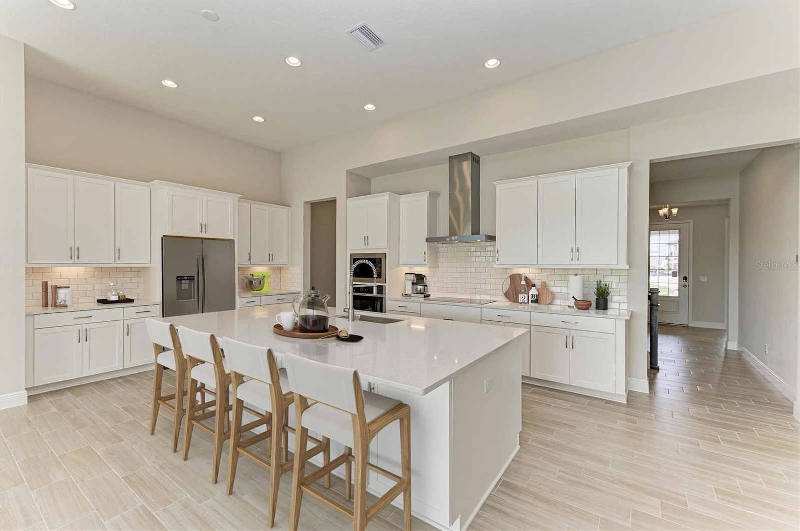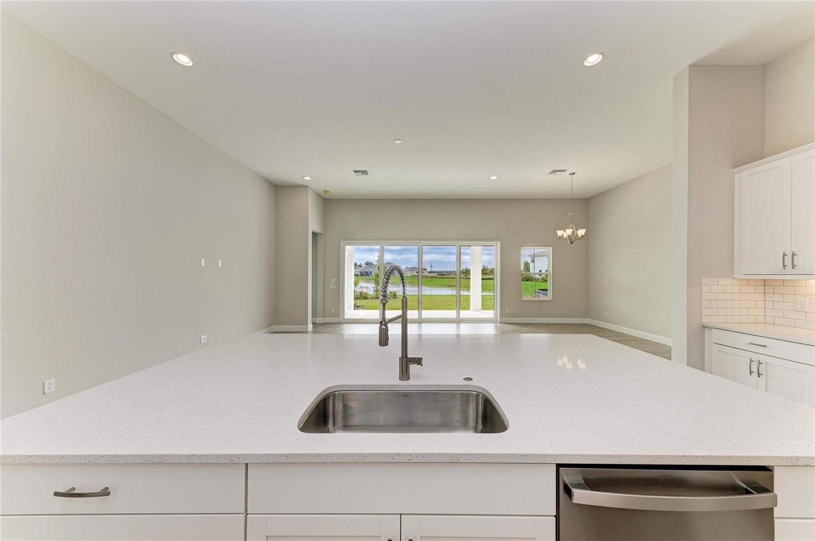 One or more photo(s) has been virtually staged. This Islamorada II is Ready Now ! This spacious residence presents five bedrooms across two thoughtfully designed stories. The main level is built for effortless living and entertaining, featuring a seamless flow connecting the grand room, island kitchen, and casual dining area. For convenience, a comfortable guest suite and full bathroom are also situated downstairs. The kitchen boasts elegant Quartz countertops and an upgraded gourmet electric appliance package that inspires culinary creativity. Outside, a generously sized lanai provides a perfect spot to unwind and take in stunning water views. The upper floor reveals an expansive bonus room, perfect for gathering or play, alongside an oversized secondary bedroom offering abundant closet space.
