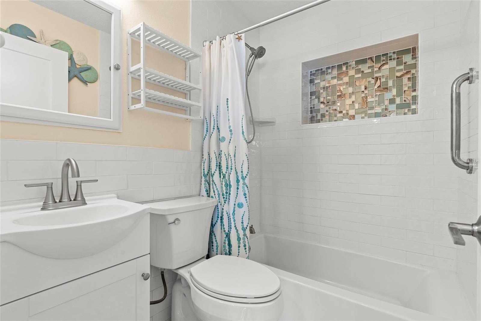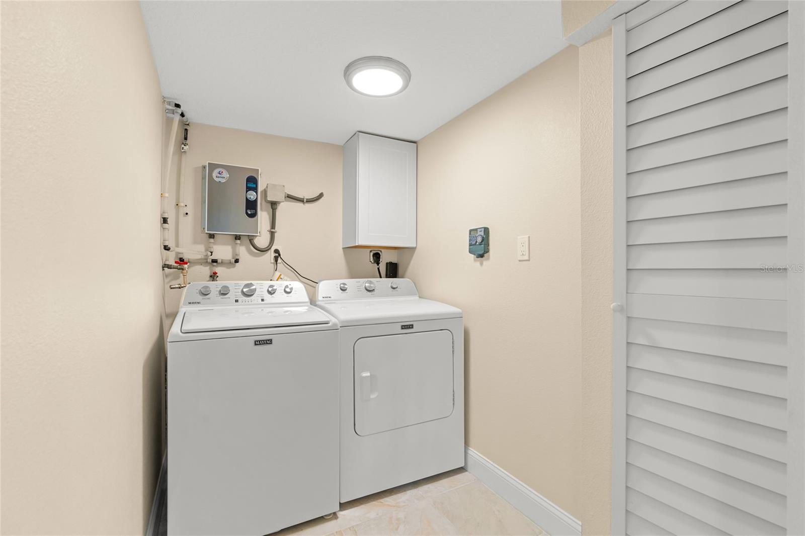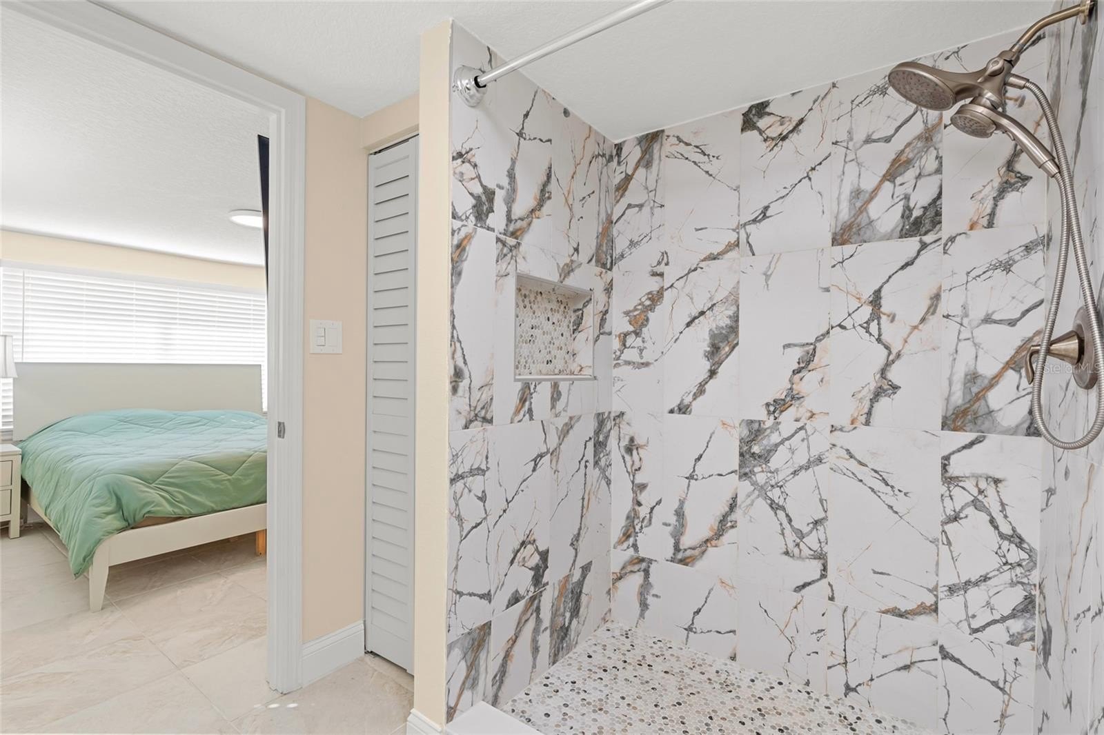 The spacious primary suite serves as a peaceful sanctuary, comfortably accommodating a king bed and workout equipment, alongside a beautifully remodeled ensuite with a large walk-in shower. There are also hurricane proof windows and a large inside laundry room.