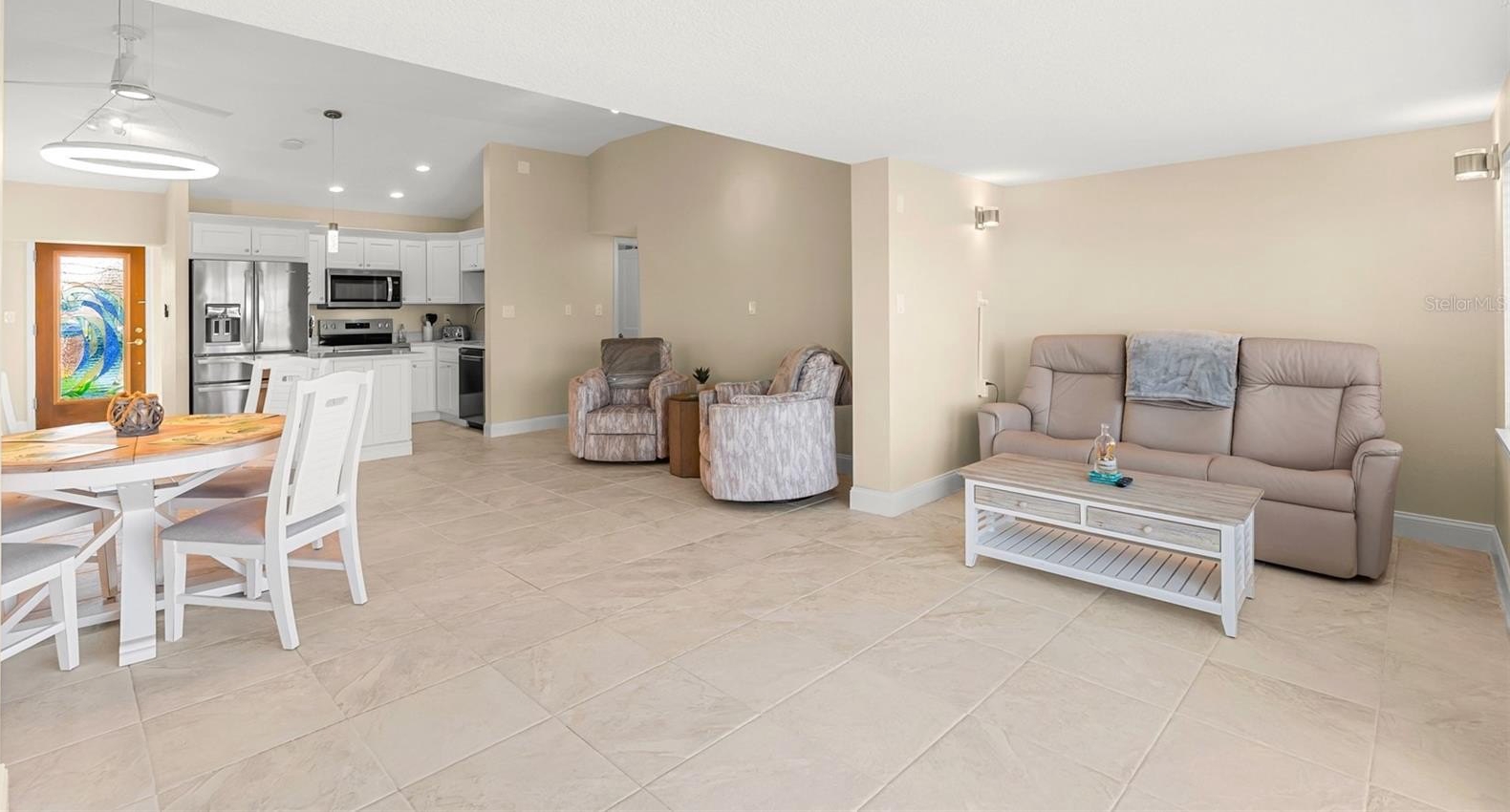 Discover your dream retreat in this stunning waterfront home, complete with an exquisite in-ground pool and breathtaking open water views. The open-concept layout features large windows and sliding doors, filling the space with abundant natural light. A modern, remodeled kitchen boasts custom cabinets, quartz countertops, and brand-new stainless steel appliances, making it perfect for entertaining.