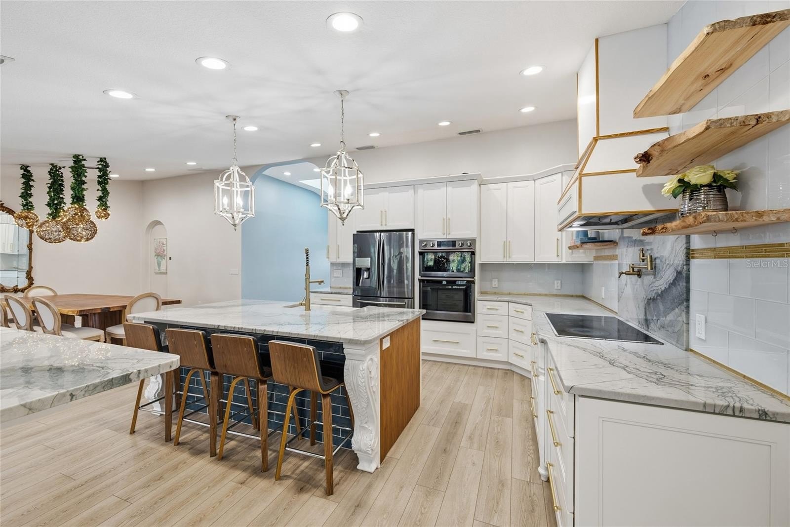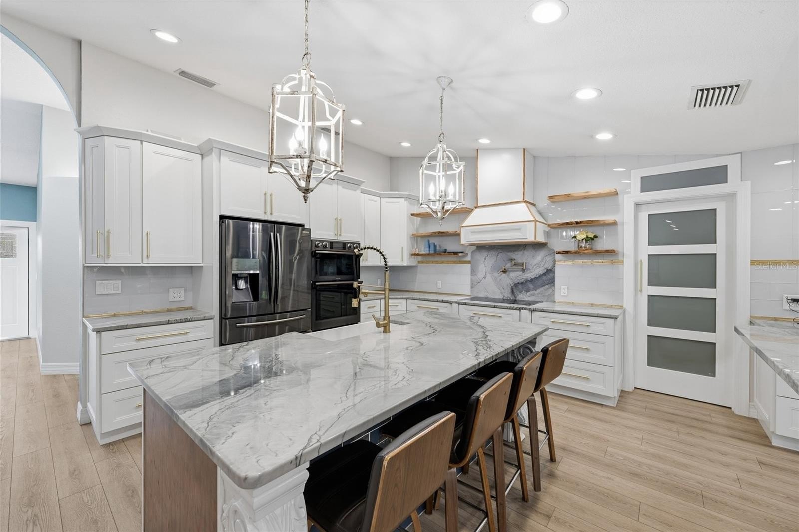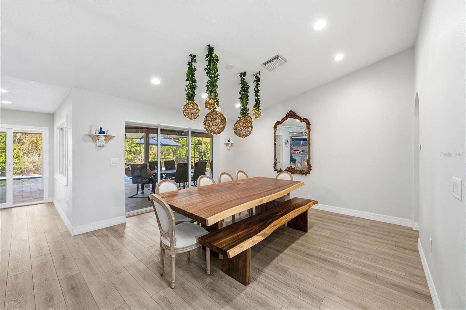 Welcome home to your luxurious pool home situated on an oversized waterfront conservation lot. Your new sanctuary sits on a sprawling .73 acre fenced corner lot. Roof 2019, and dual A/C systems. Double door entrance into an expansive open floorpan with the central hub of the home harmoniously joining your dining room, kitchen and living room together into the ultimate entertainer's home! Slide the pocket doors into the wall and seamlessly join your enormous lanai areas for even larger gatherings. Imagine the parties you can host here, or simply enjoying your the peace and serenity of calling this amazing space "home". Your saltwater pool offers a beach entrance on to a large sunshelf for relaxing as you enjoy the surrounding natural beauty of the pond and conservation views. Color changing LED pool light, two lighted bubblers and dual umbrellas on the sundeck all are indicative of the "extras" you an expect to find inside the home too! Too many to list here! A half bath as well as an outdoor shower, complete with hot water, help to keep your interior in pristine condition! Just outside of your screened cage there is a paved grilling station and then a large 20' by 20' open concrete pad for true outdoor living where you can add swings, a playset, hammocks, a canoe storage rack, etc. Yes, you can canoe on the pond in your new backyard! Your kitchen features quartzite counters, dual islands, one of which can be raised to bar height via remote, ample cabinetry, live edge camphor tree open shelving, and a very nice walk in pantry. Living room has a gas fireplace for those cozy nights! You'll appreciate the split bedroom floorpan with high ceilings and waterproof LVP flooring throughout all main areas, with tile in the bathrooms only. Master suite has a sumptuous private ensuite bath as well as a private sauna! The palatial master closet is to be envied, and has its own security keypad! Adjacent to the master suite is a flex room that can be a gym, dance studio, crafters haven, "man cave", home business center, second office, etc. At the front entrance is an office space that can easily be used as a 4th bedroom. Down the hall are 2 additional bedrooms along with a second full bath, another half bath and an interior laundry room with great storage that also opens to your garage. All of the windows and doors are hurricane rated or have hurricane panels available, kept in the back storage room, so you can actually use the garage for your vehicles! Speaking of vehicles, your driveway can comfortably accommodate 7! The enormous fenced in side yard with 10' wide dual gates offers ideal storage for any additional toys you may have! Your new home features a security system with cameras, DVR and monitor. Zoned for "A" rated schools! Whispering Lakes offers a community park with pickelball courts, basketball courts, and a pavilion for gatherings. This property offers a rare combination of privacy, natural beauty, and proximity to local amenities, such as the East Lake Sports Complex, Brooker Creek Preserve, the Pinellas Trail North, East Lake/Boot Ranch shops and restaurants, various Golf Clubs. It's just a short distance to the thriving downtown Tarpon Springs Sponge Docks, 2 international Tampa area airports, Clearwater beach, and more. Home was recently appraised and square footage reflects these recent measurements. Buyer to confirm. Call today so you don’t miss out on the opportunity to make this stunning property your own!