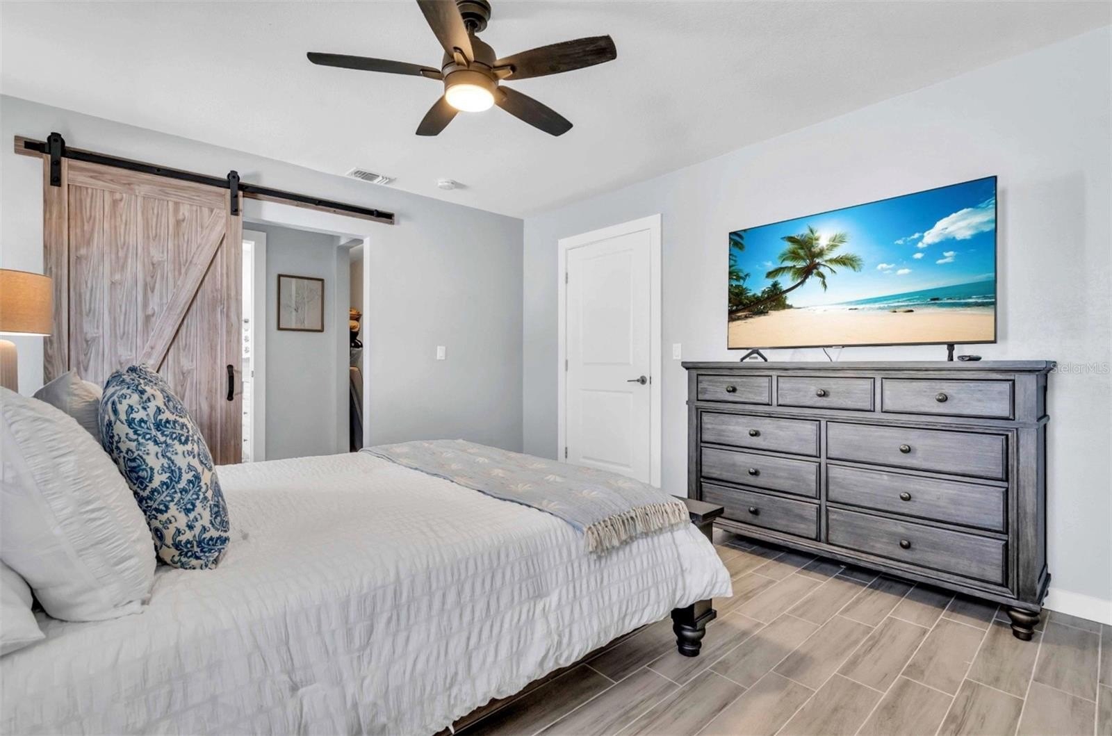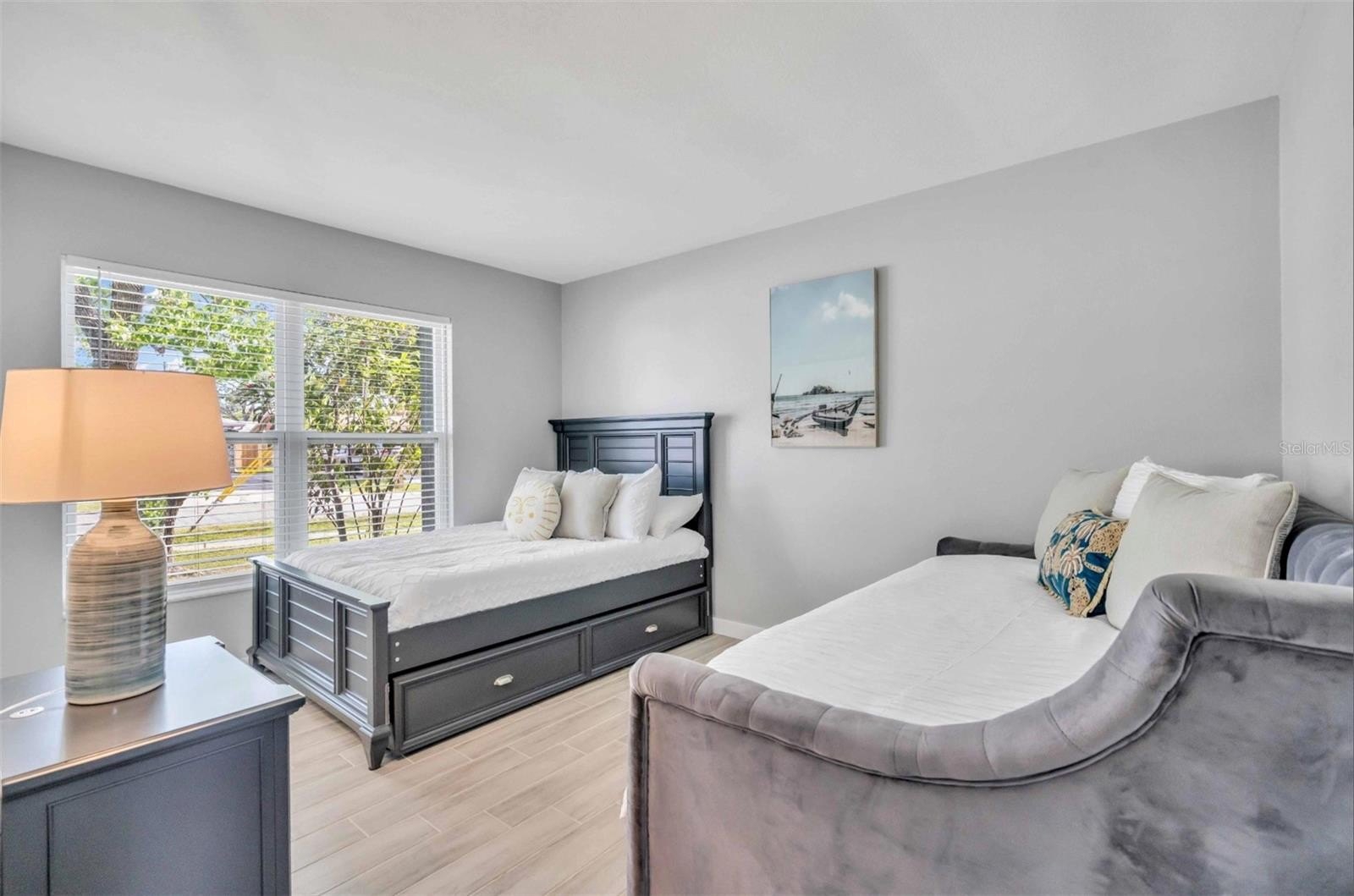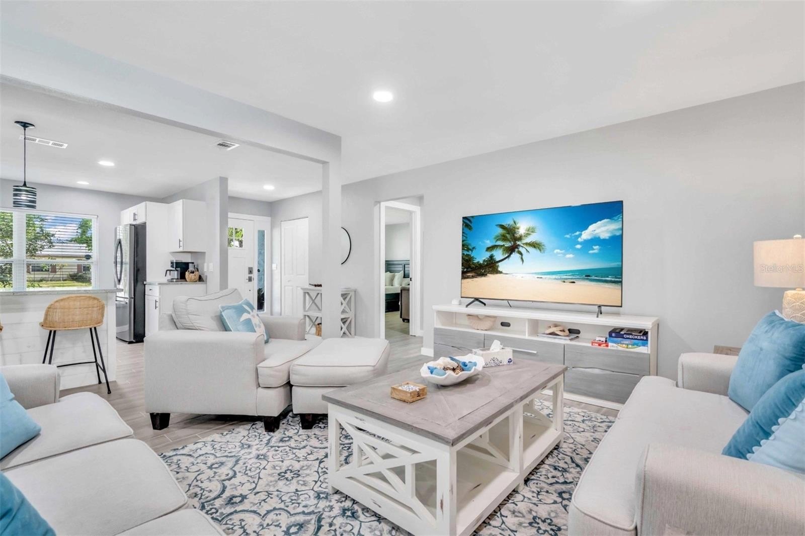 Step inside to discover an open, light-filled floorplan with stylish wood-look tile floors that flow throughout and seamless indoor-outdoor living. The heart of the home is the spacious, upgraded kitchen, featuring updated cabinets, granite counters, and modern stainless-steel appliances — perfect for everyday meals and entertaining alike. Sliding glass doors flood the living spaces with sunshine while framing views of your screened-in pool and covered lanai — creating a serene, private retreat for morning coffee or evening gatherings.
