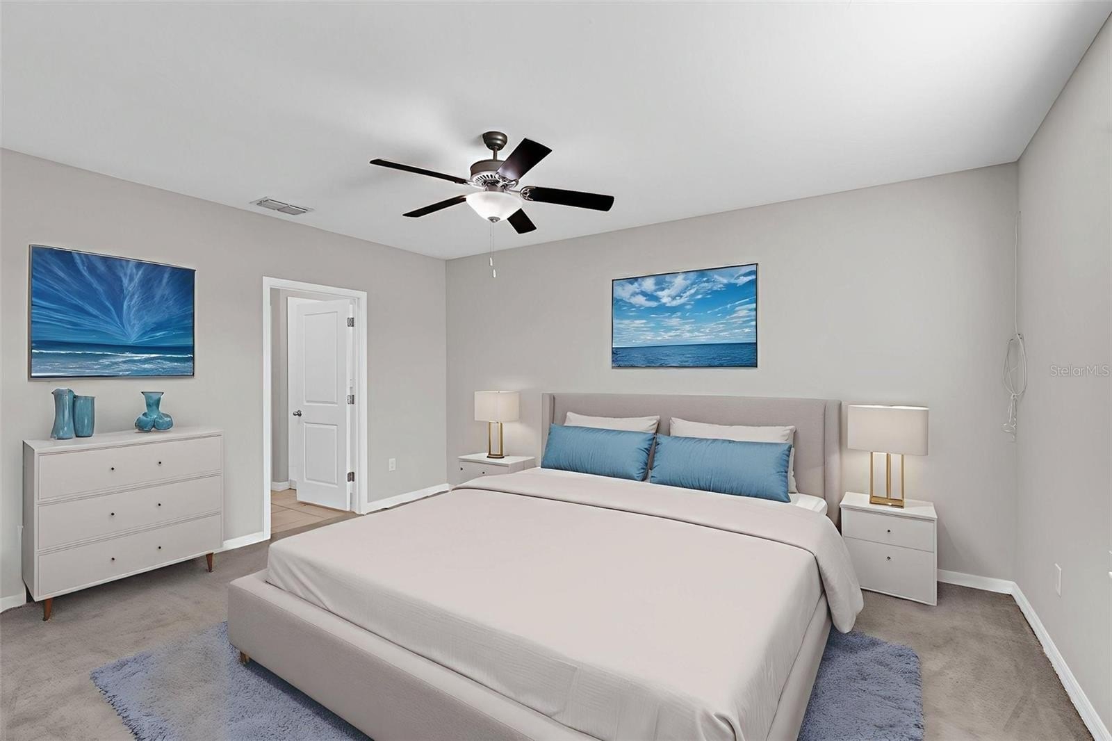 One or more photo(s) has been virtually staged. pacious 5-bedroom Apollo Beach home built in 2020 with block construction and located in an X flood zone for added storm protection. The first floor features an open living, dining, and kitchen layout with abundant cabinetry, extensive counter space, and a walk-in pantry. The owner’s suite is conveniently located downstairs with a private bath.