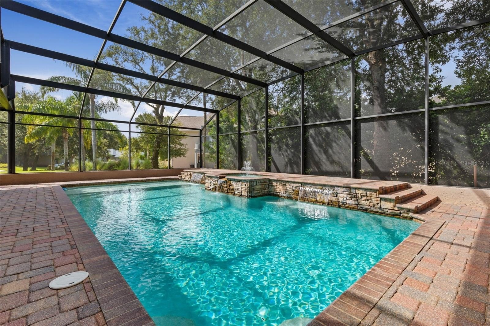 Don't miss this Exquisite Custom Home with Exceptional Outdoor Living in Ormond Lakes.This stunning 5-bedroom custom estate captures timeless elegance and modern comfort. Elevated above the street on an oversized lot with a brick paver circular drive and mature landscaping. Upon entering through the etched double doors, the home welcomes you with refined craftsmanship showcased in tray ceilings, crown molding, and intricate niche details. Designed for exceptional indoor/outdoor enjoyment, the semi open plan features a spacious pool area visible from the family room, kitchen, breakfast nook and primary bedroom. The expansive screened pool area features waterfalls, a fountain, and an extended pavered deck, creating a beautiful serene backdrop. The covered lanai has hookups for an outdoor kitchen and future fire pit, making this space the ultimate setting for gatherings.The specially designed, custom kitchen is a highlight, featuring KitchenAid appliances, a gas cooktop with electric oven, island with microwave drawer, hammered copper sink, large peninsula with serving bar, and a generous walk-in pantry. The huge primary suite offers two large walk-in closets and a big bonus room that can be used as an office, workout room, nursery, or little ones visiting grands. The primary suite is enhanced by a beautifully appointed bath with separate vanities, makeup vanity, jetted tub, and oversized rain shower as well as a private water closet. A thoughtfully designed guest wing includes two bedrooms with a shared bath, plus a pool bath with walk-in shower, a study or small bedroom and large laundry room. Down the hall, take the stairs to bedroom five with its own bath, walk-in closet and lots of natural light.The 3 car oversized garage also includes an air conditioned storage room and coated floors. The yard is irrigated with an on site well and includes a buried propane tank. Propane hookups are waiting for a future spa heater, patio grille and pool deck firepit. Nestled within the highly desirable Ormond Lakes community, residents enjoy community amenities including a clubhouse, pool, tennis courts (lined for pickleball), basketball half-court, playground, and a scenic 40-acre lake in the middle of the community with fishing pier and picnic area. Conveniently located close to I-95 for traveling and commutes, shopping, entertainment and only seven miles to the beach!
