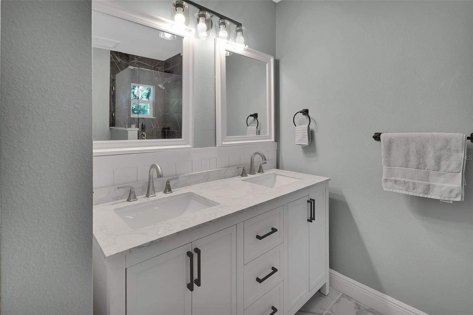 Looking for Space at an affordable price? This Classic 1950's home is ready for your family. Located on the Eastside of Deland, it is just minutes to I-4 and Highway 92, and just 20 minutes to I-95. The home has been completely remodeled from the ground up. From the moment you walk into the spacious formal living room, you will see and feel the quality of the workmanship with the transformation of this home. There is Luxury Vinyl Planking (LVP) throughout the home. From the Living Room you will walk into the heart of this large family home, a very open kitchen and dining room. Kitchen features a large island for family enjoyment with a custom stone wall set up for your flat screen TV for watching all your favorite shows. While prepping meals, one will love the Quartz countertops, stainless steel appliances and the beautiful views of the backyard. Just off the kitchen, you will find an oversized utility room with cabinets and butcher block countertop. In addition, there is an office area, these rooms have two entrance doors, one which opens to a quaint back porch overlooking the backyard. On the Bedroom side of this home, there are 3 normal bedrooms with closets and ceiling fans. The amazing bonus is, this home is set up with two Primary Suites, both with large rooms, closets, walk in tile showers, glass enclosures, tall vanities and double sinks. One of the primary suites also features a bonus room with amazing backyard views. The whole family will enjoy the wood patio with access from the Kitchen and one of the primary bedrooms. There is also a beautiful 3rd bathroom with large tile shower / glass shower doors. Part of this properties transformation is the custom landscape, all with new irrigation system to maintain the beauty. From the back porch, follow the winding sidewalk to the detached building which offers for ample storage for work or play vehicles. One area could be an apartment / In-law suite, it had once been set up as an apartment. This building has a concrete floor, water and electric. The home has all new: Electric, Plumbing, Roof, Septic Tank and Drain field, Drywall, Exterior & Interior Doors, Windows, Insulation, light fixtures, and Plumbing Fixtures. Most everything has been touched in this remodel. DeLand Florida features an Award Winning Mainstreet, great restaurants, and the Famous ST. Johns River.