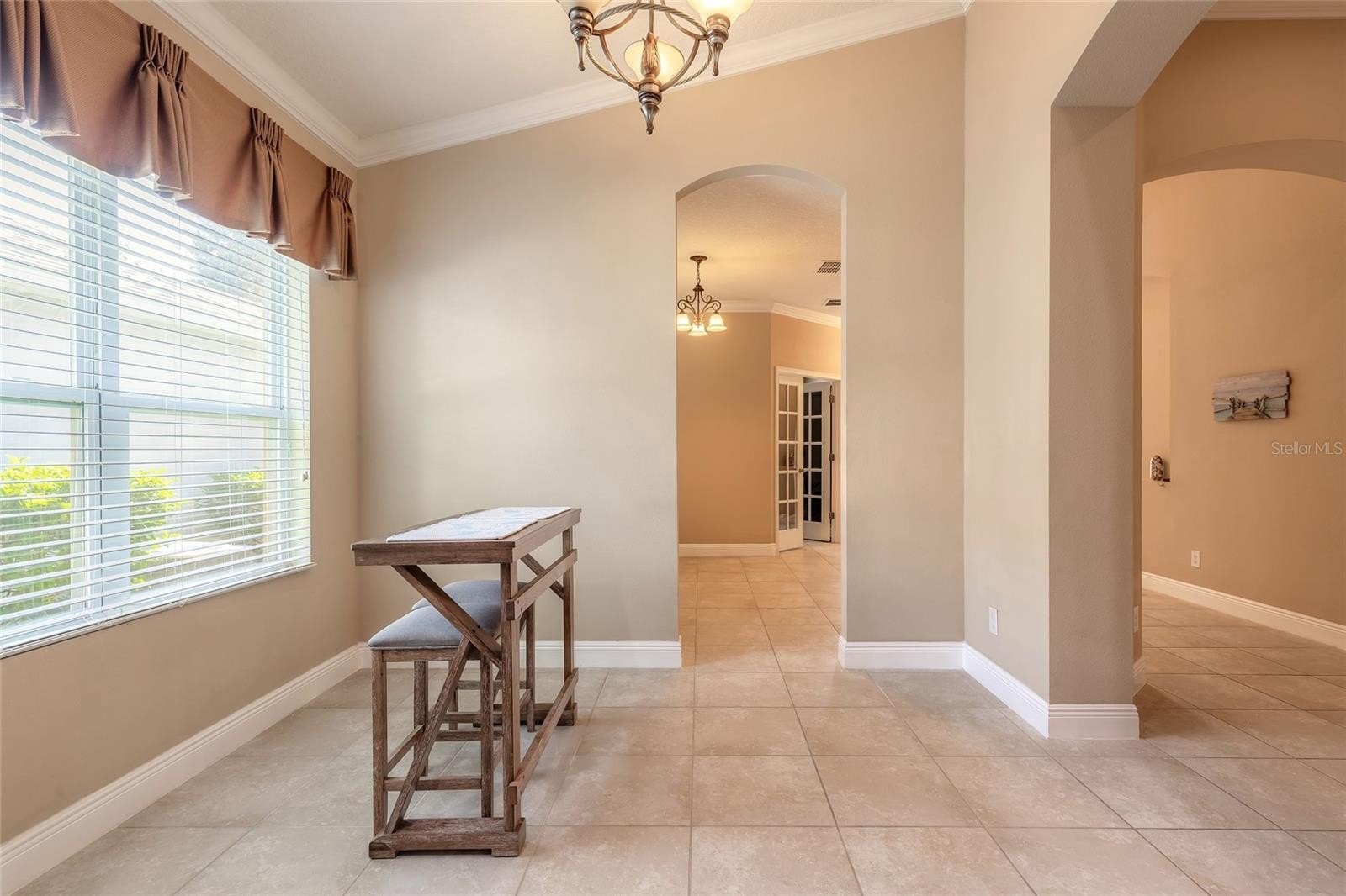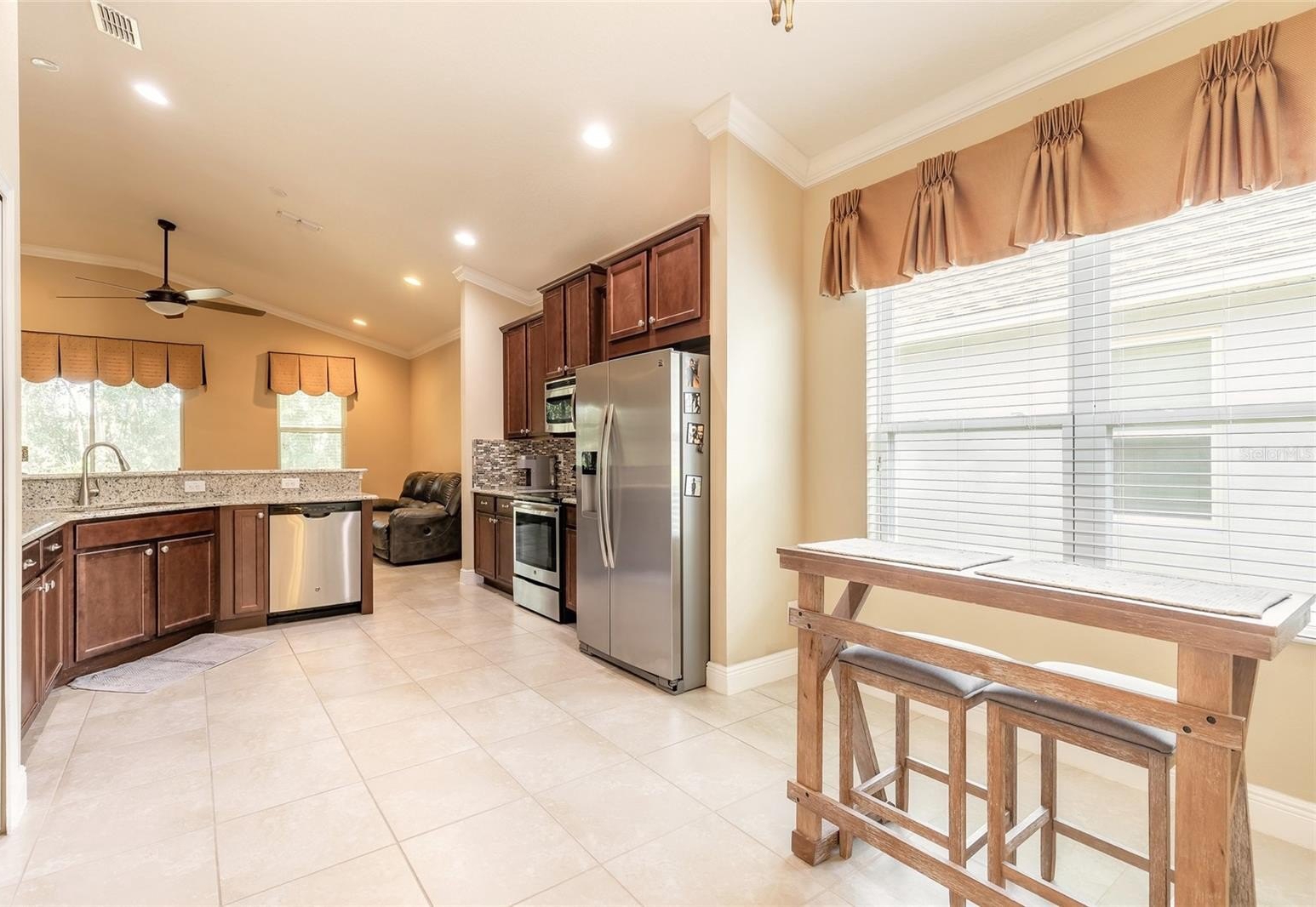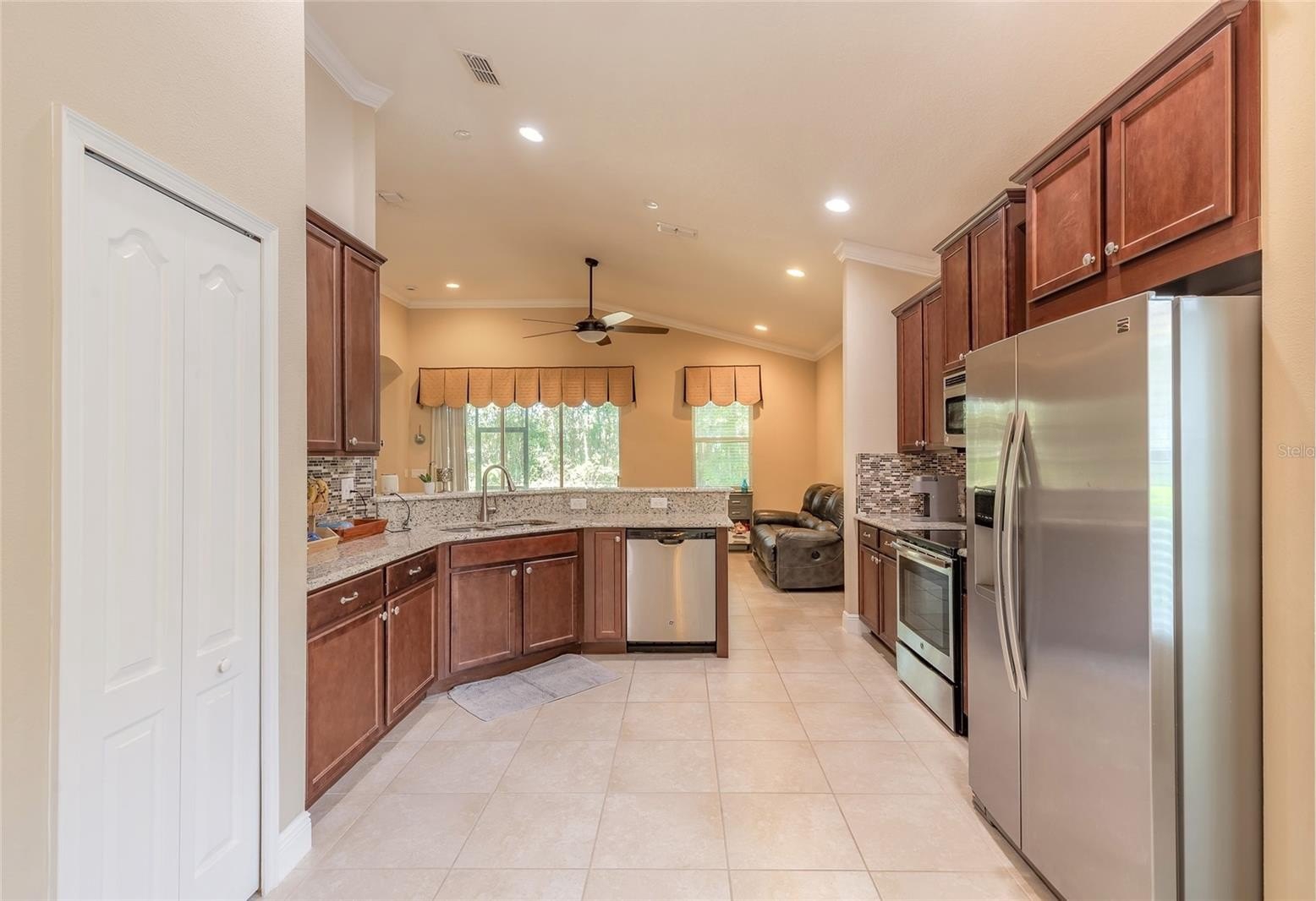Discover refined living in this exceptional Saddlebrook home, where comfort, style, and functionality come together beautifully. From the moment you arrive, the paved driveway, manicured landscaping, and inviting walkway set the tone for the quality found within. Step inside to a thoughtfully designed split floor plan offering three spacious bedrooms plus a versatile office or den, two full baths, and a formal dining room, perfect for both everyday living and entertaining. Tile flooring flows throughout the main living areas, creating a bright and cohesive feel, while the bedrooms, including the primary suite, feature luxury vinyl flooring for added warmth and durability. The open-concept kitchen and great room provide an effortless flow and overlook the covered lanai, filling the home with natural light and serene views. At the heart of the home, the gourmet kitchen shines with granite countertops, maple cabinetry, stainless steel appliances, a pantry, and a beautiful tile backsplash, ideal for both casual meals and dinner gatherings. The spacious primary suite is a private retreat, offering dual walk-in his-and-hers closets and a luxurious bath featuring a sunken soaking tub, separate walk-in shower, and elegant finishes. Additional highlights include tray ceilings, crown molding, and meticulous attention to detail throughout. Convenience meets practicality with a full indoor laundry room, located just off the garage, offering ample space for organization and storage. Located in the highly sought-after Saddlebrook community, you’ll enjoy peaceful surroundings just minutes from historic downtown DeLand, where southern charm meets modern convenience. Stroll through quaint streets lined with boutiques, fine dining, and entertainment. The Saddlebrook neighborhood also offers a community swimming pool, perfect for relaxing on warm Florida days and connecting with neighbors. More than just a home, this property offers a lifestyle of comfort, sophistication, and community in the heart of DeLand. Roof, HVAC, and hot water heater ages are 2015. All information deemed accurate but cannot be guaranteed.