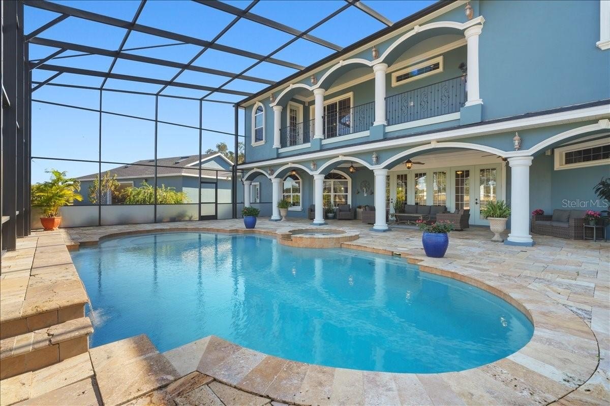 Step into refined country living in this breathtaking custom estate, showcasing over 6,400 square feet of beautifully designed interiors, nestled on 6.72 acres of meticulously maintained, fenced land. This energy-efficient home was designed with craftsmanship and comfort in mind, featuring 6 bedrooms, 5.1 baths, and custom touches throughout. The first floor showcases a spacious open layout with 4 large bedrooms and 4.1 baths, including a convenient pool bath. The gourmet kitchen is a true centerpiece, boasting custom maple cabinetry, a gas range with a 200-gallon tank, a large island, and a built-in breakfast area. Just beyond, the formal dining room, with tray ceilings, flows seamlessly into the family room, framed by elegant columns and French doors that lead to the lanai. Upstairs, a handcrafted mahogany and wrought iron staircase leads to an expansive loft or secondary living area. The owner's suite provides a serene retreat, complete with a private sitting area, a huge walk-in closet with convenient laundry space, and a spa-like tiled bath featuring a jetted tub and walk-in shower. Enjoy morning coffee from the private balcony overlooking the pool and manicured grounds. There is also a guest bedroom and a full bath on this floor. Outside, resort-style living awaits with a sparkling pool accented by waterfalls and a spacious travertine deck perfect for entertaining. Additional features include an oversized 3-car garage with 10-foot doors and skylights, an irrigation system, and a new roof installed in 2024. The property also includes an additional 1.6-acre parcel across the street with its own well and electric service. Located just 8 miles from historic downtown DeLand, this home offers the peace of rural living with easy access to city amenities. DeLand is renowned for its award-winning historic Main Street, thriving arts and dining scene, year-round festivals, and a welcoming community vibe. Residents enjoy top-rated parks, Stetson University, scenic state parks like Blue Spring and De Leon Springs, outdoor adventures, and major annual events. DeLand's blend of historic charm, cultural attractions, and proximity to both Orlando and Daytona Beach makes it the place to be for those seeking lifestyle, recreation, and investment value.