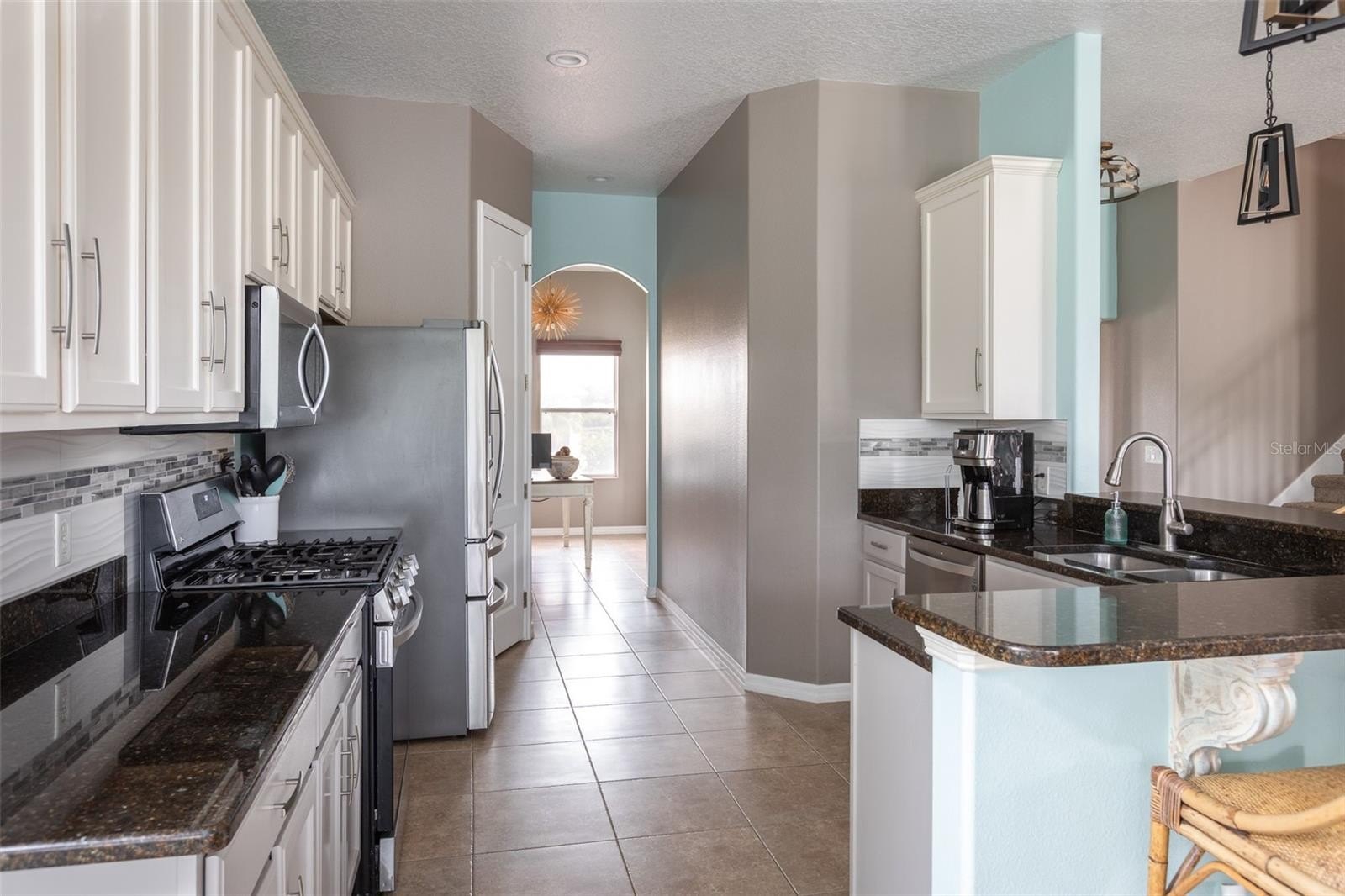 EXPERIENCE THE ULTIMATE IN LIVABILITY AND OUTDOOR LIVING! Immerse yourself in a relaxed lifestyle with this exquisitely updated home from 2021, crafted to provide both comfort and functionality. The open floor plan seamlessly connects living spaces, highlighted by cozy tile floors. The contemporary kitchen boasts granite countertops, ample cabinetry, sleek stainless steel appliances with a gas cooktop, and a spacious bar — perfect for casual dining and entertaining. At the heart of social gatherings is the expansive great room with 10-foot ceilings, leading to a vast 34x30 screened lanai. This outdoor paradise is ideal for entertaining friends and family, complete with a bar area and a luxurious hot tub. A formal dining area with a built-in buffet sits beyond the arched entry just off the foyer with easy access to the kitchen. A powder bath complements the thoughtful layout of the ground floor. There is also a practical 9x6 laundry room. Upstairs, unwind in the 19x11 media room, an ideal space for relaxation, movie nights, or gaming. The upper level also hosts inviting bedrooms, including a serene master suite with 10-foot ceilings, a private 8x5 screened porch over-looking the pool, dual walk-in closets, and a lavish bath with a garden tub and double granite vanities. The second bedroom features its own tiled bath, while the third and fourth bedrooms share a Jack & Jill bath for added convenience. Step outside to discover a private oasis featuring an in-ground saltwater pool with a sun deck, waterfall, and a unique remote-controlled swim machine. This 41x37 screened area is surrounded by lush landscaping for privacy and ambiance.The property includes TWO GARAGES and a 24x15 man cave/workshop/office, providing versatile space for hobbies or transforming into a pool house or mother in-law-suite. It's positioned on a beautifully landscaped double lot with a brick paver driveway. It comes equipped with a sprinkler system and is wired for a generator, ensuring year-round comfort. This home's blend of indoor and outdoor living makes it a rare treasure.