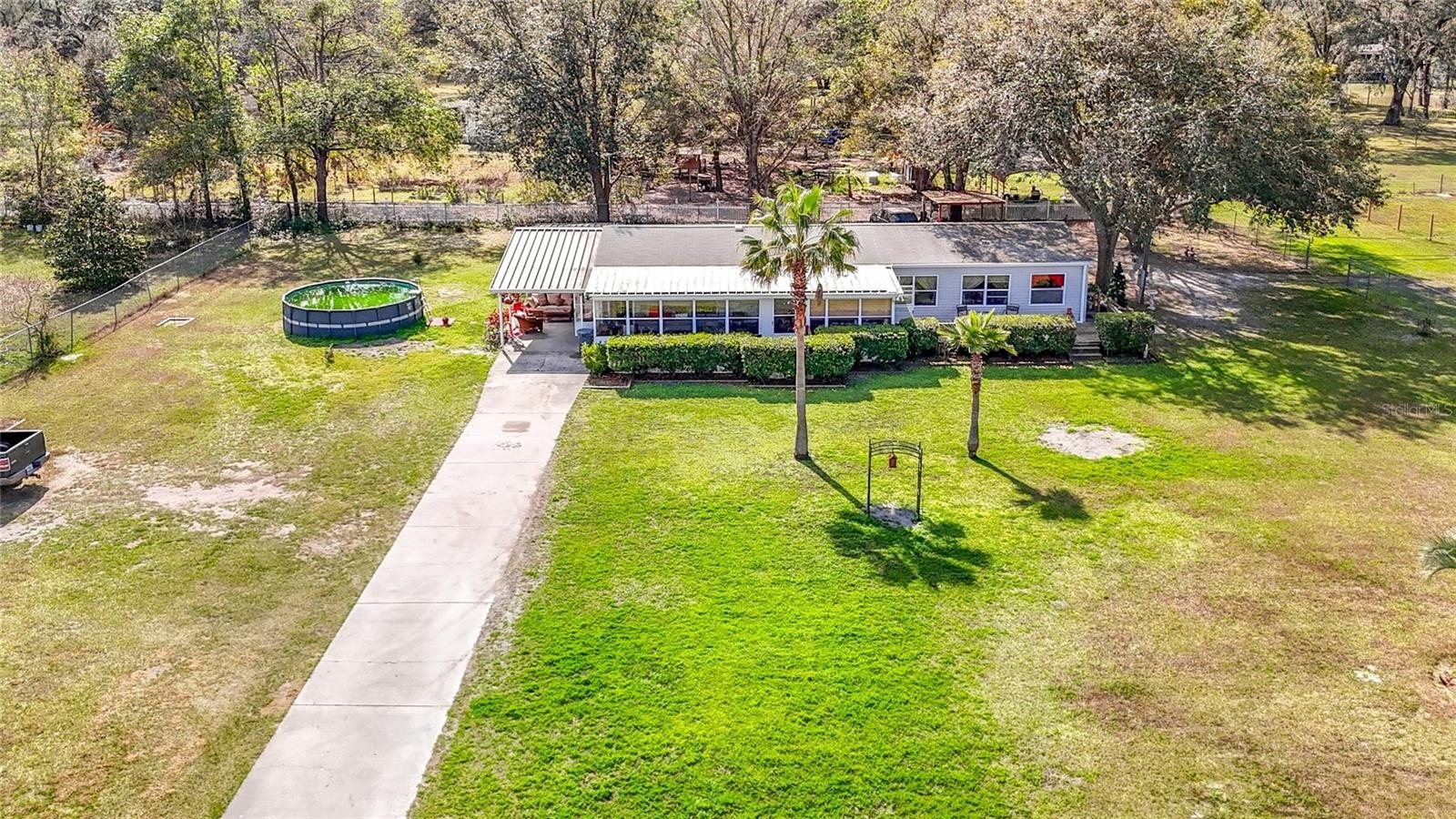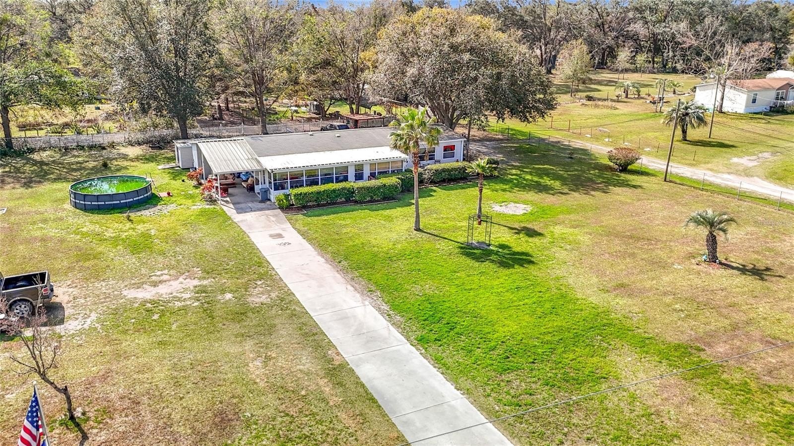 Charming Mobile Home Retreat with In-Law Suite Addition. Come fall in love with this 4 bedroom, 3 bath home that sits on a beautiful fully fenced 1 acre lot with an above ground pool. The original mobile home provides a cozy and functional living space and offers 2 bedrooms, 2 baths and leads to a full separate in-law suite that also has a private entrance. While the addition dramatically enhances its capacity and livability. The in-law suite includes 2 bedrooms, 1 bathroom, a full kitchen and spacious living room. This expanded layout is particularly well-suited for an in-law suite, offering independence and privacy while remaining connected to the main home. It’s an ideal setup for extended family, visiting relatives, or even as a potential rental opportunity. The AR zoning further expands your possibilities, whether your dream is to have horses, grow your own food, or simply bask in the freedom that comes with rural property ownership. Meanwhile, the sheds and pool both add functional and recreational value, rounding out the property’s appeal. Imagine savoring a morning coffee on your porch as the sun rises over the fields, or hosting weekend barbecues by the pool with friends and family. The property offers ample parking for guests with a double gate entrance that leads down the long driveway to the covered carport and an additional single gate entrance to ensure privacy and peace of mind. There is a semi-wrap around porch with wooden deck, 2 sheds…one detached with a workbench and the other attached and an additional carport. Other amazing features seller states were done include newer roof, 2 newer AC’s (1 about 1year old, the other about 5 years old), newer water heater, newer front door on the in-law side, gutters, laundry closet. Prime location that’s minutes from shopping, dining, entertainment, great schools, hospitals, and easy access to I-75, US301, and SR54. Easy access to the airport, Tampa, Clearwater and St. Pete Beaches (Ranked in the top 5 Beaches in the US) and the famous Tarpon Springs sponge docks.