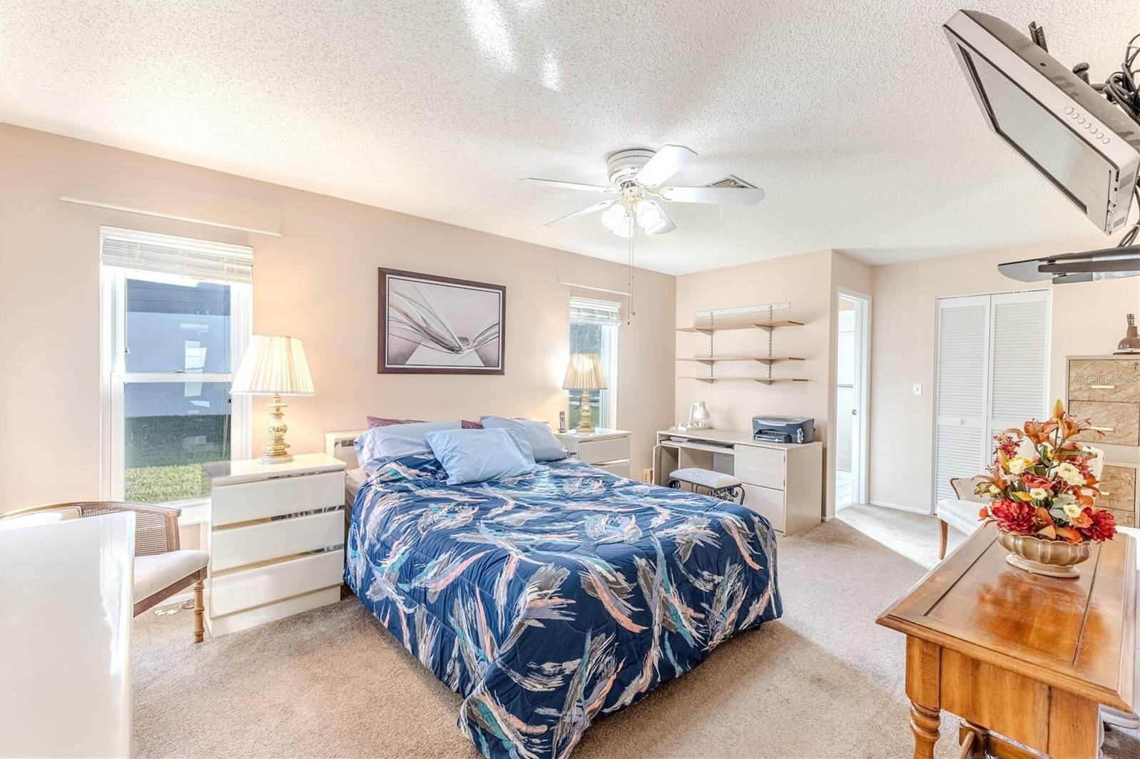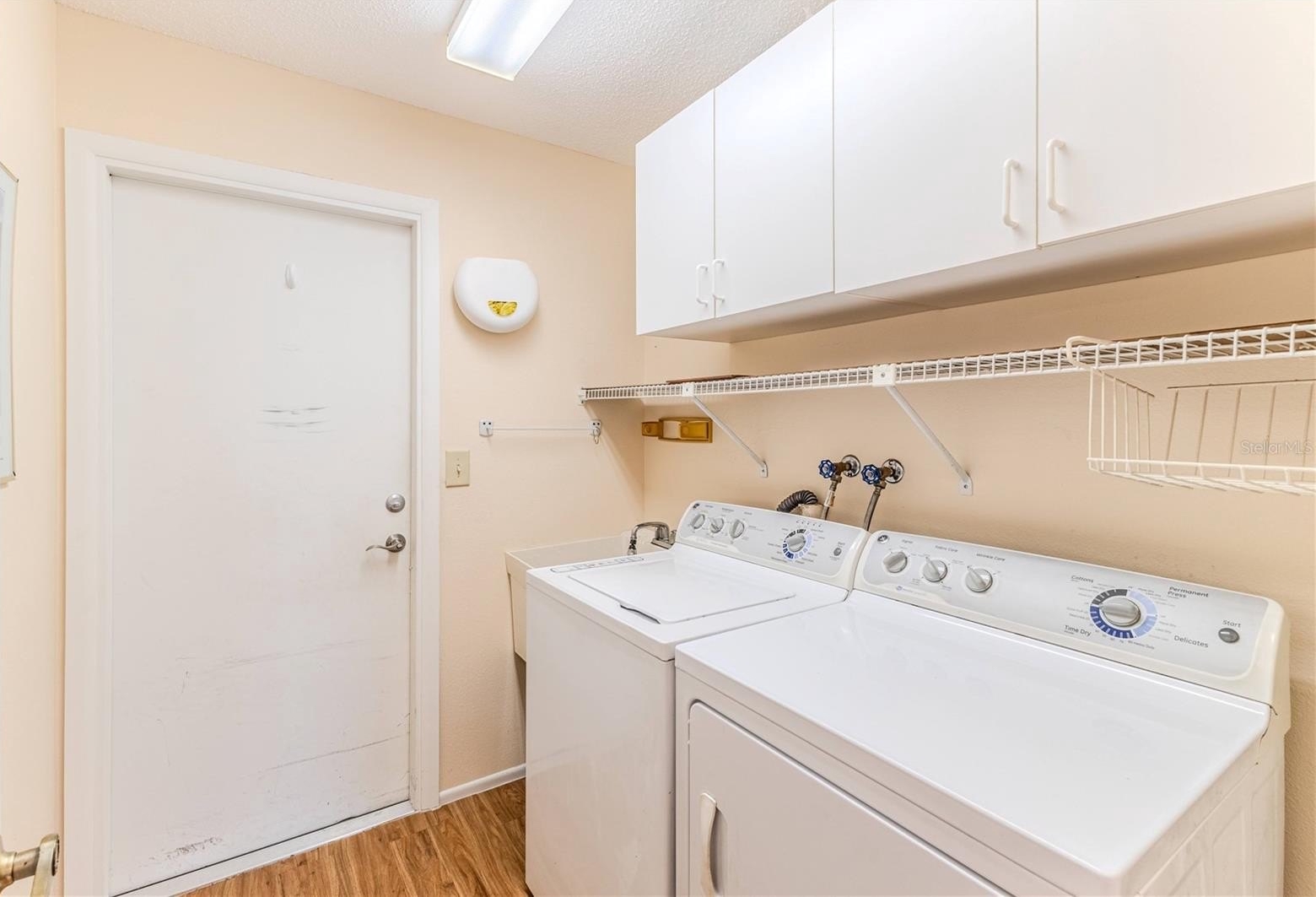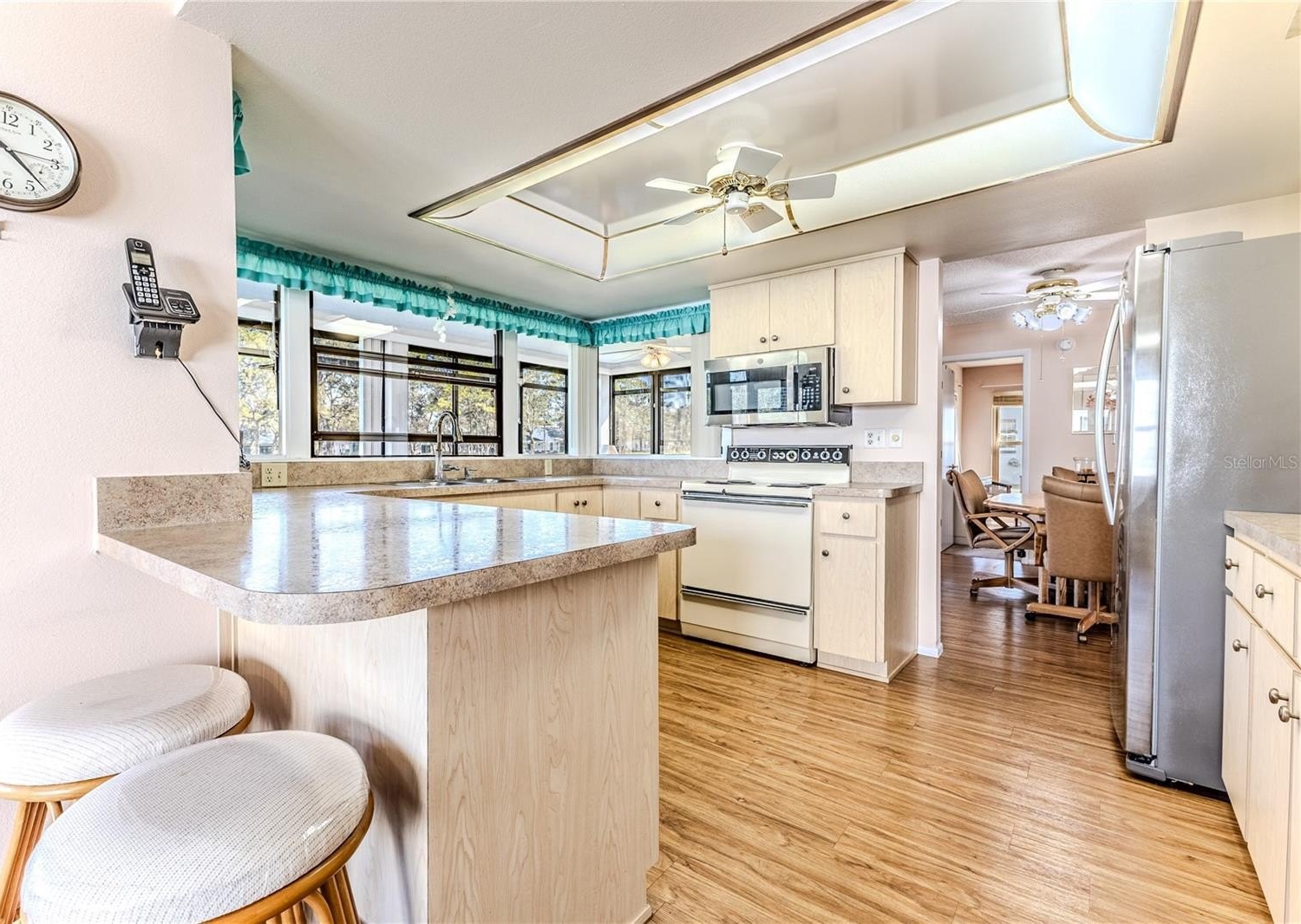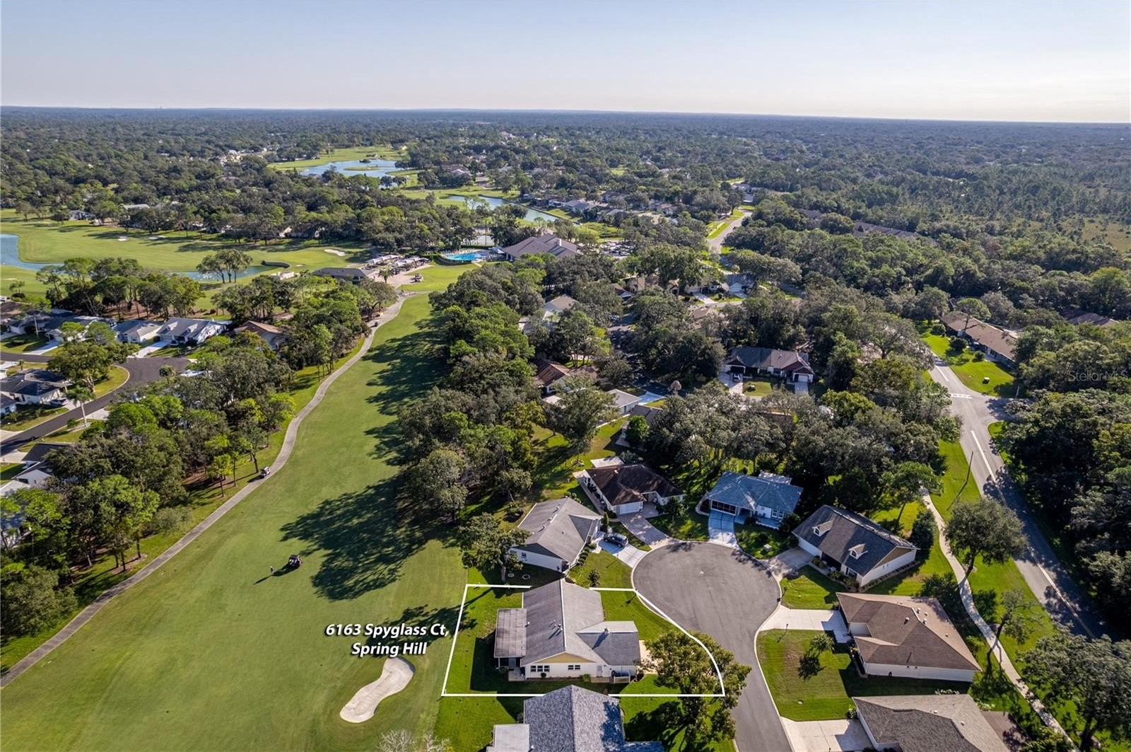 This beautifully maintained 2-bedroom, 2-bathroom, 2-car garage home is located on The Lakes Golf Course, offering gorgeous panoramic views and the true Florida lifestyle. From the moment you arrive, you'll be impressed by the delightfully painted driveway and walkway that add to the home's amazing curb appeal. The charming front porch is the ideal spot to relax under the ceiling fan and visit with neighbors. Step inside to a bright and open living room and dining room combination, complete with a front coat-closet and a comfortable split-bedroom floor plan for added privacy. The spacious kitchen features beautiful golf course views, a window that opens to the lanai, a large pantry with pull-out shelves, and plenty of cabinet space. The family room flows seamlessly to the enclosed lanai, where you can unwind and take in the peaceful golf course scenery. The primary suite includes a large walk-in closet and a private bath with a step-in shower. On the opposite side of the home, you'll find the guest bedroom with a large closet and a full bath with a tub and shower. Enjoy the benefits of a 2022 HVAC system, windows replaced in 2014, irrigation well, and a roof from 2002. The inside laundry room offers cabinets, a utility sink, washer, dryer, and extra storage space. The garage features sliding screen doors, allowing fresh air to flow through while you work or relax. Ground remediation has been completed, with an engineer's report available — this home is fully insurable. Furnishings and golf cart are available for purchase separately. Timber Pines is an award winning, guard-gated, 55+, deed-restricted community offering a resort-style lifestyle: three 18-hole golf courses, a 9-hole pitch & putt, tennis, 12 pickleball courts, two community swimming pools, country club restaurant and bar, fitness center, billiards, performing arts, and over 100 social clubs and activities.