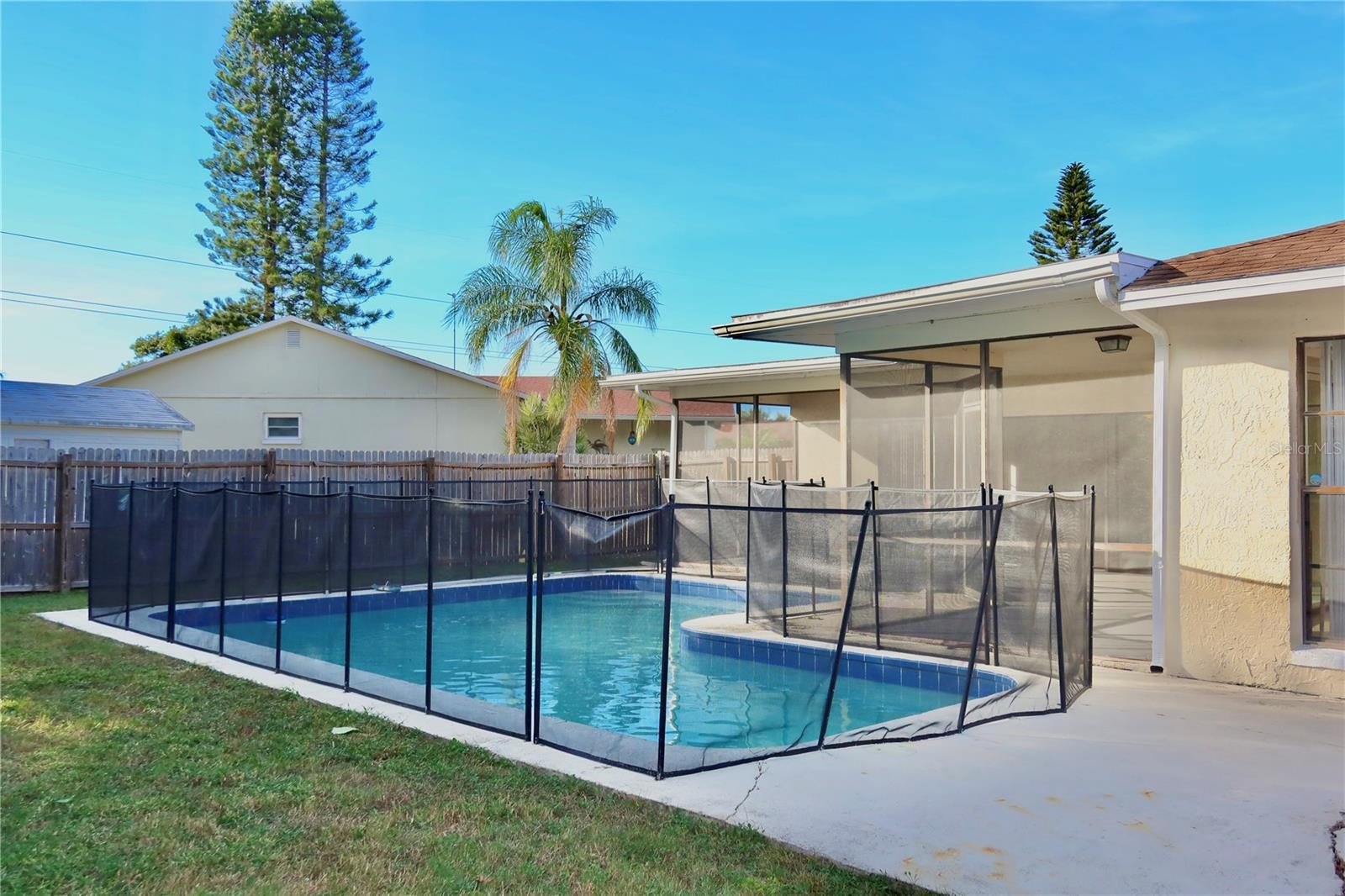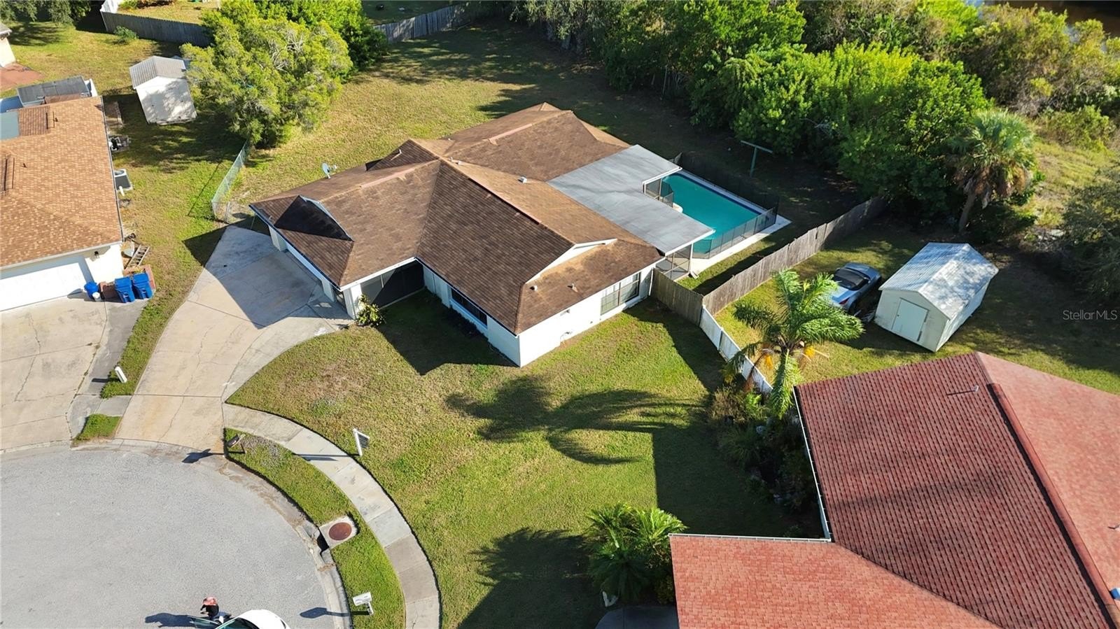 Welcome to this beautifully maintained 3 bedroom, 2.5 bath pool home, ideally situated on a quiet CUL-DE-SAC in the desirable Aloha Gardens neighborhood. Sitting on an oversized fenced lot of nearly 1/3 acre, this property offers exceptional space both inside and out. The expansive backyard not only features a beautiful pool with a large lanai for outdoor relaxation and entertaining, but also provides room to park an RV, a boat, or additional vehicles (NEAR .3 OF AN ACRE LOT) - something truly rare in this area. The attached 2 car garage adds even more convenience, offering generous storage and daily practicality. Step inside to a spacious, open-concept layout filled with natural light. The large living and dining areas flow seamlessly and are framed by oversized sliding glass doors that bring the outside in and showcase the serene view of the backyard oasis. One of the standout features of this home is its privacy - there are no rear neighbors, giving you peace, quiet, and a sense of retreat. The kitchen is equally impressive with beautiful wood cabinetry, recessed lighting, a central island, and a spacious pantry, making it both functional and stylish. Every bedroom in the home includes a walk-in closet, providing plenty of storage space and comfort for the whole family. Located less than 500 feet from the Holiday Recreation Center—with gym facilities, ball fields, tennis courts, and a playground and just minutes from US-19, shopping centers, dining options, downtown Tampa, and Florida’s most beautiful beaches, this property truly combines location, privacy, and spacious living. Best of all, there are NO HOA fees to worry about. This MOVE IN READY home is the perfect place to enjoy Florida living at its finest.