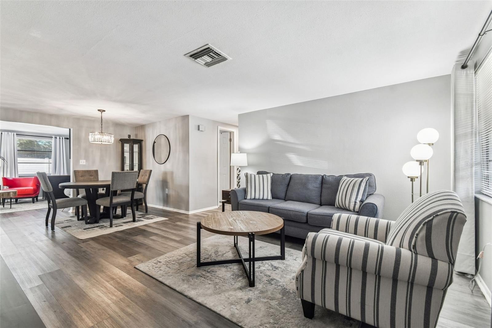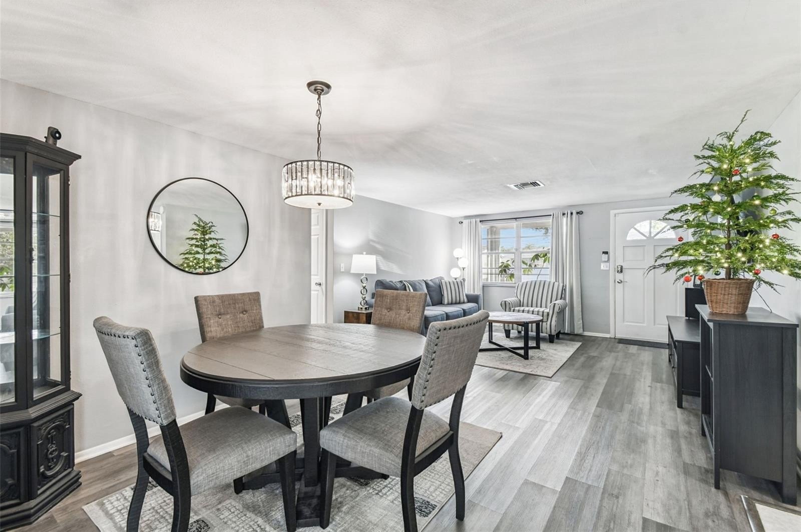 Inside, you’ll find a bright, open layout with new flooring and a clean, modern feel. The home offers two comfortable bedrooms, an updated bathroom, and a spacious living area that flows into the upgraded kitchen, complete with newer cabinetry, stylish backsplash, and dark appliances. A standout feature is the large bonus room, filled with natural light and offering direct access to the backyard—ideal for a second living space, office, playroom, or hobby room. The fully vinyl-fenced backyard includes a covered porch, storage shed, fire pit area, and a fruit-bearing fig tree, along with plenty of usable yard space for outdoor enjoyment. Conveniently located near shopping, dining, parks, medical centers, US-19, and the Gulf Coast waterfront, this home is a great fit for first-time buyers, families, or investors.