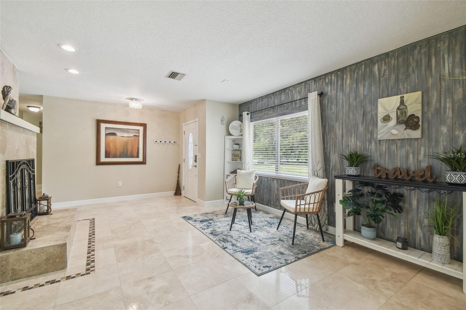 Make the move to this peaceful 2-Acre Estate in Golden Acres is ready to go! Nestled in the sought-after Golden Acres community, this upgraded 3-bedroom, 2-bathroom home offers the perfect combination of privacy, versatility, and modern comfort—with no HOA and ER zoning that permits livestock, chickens, and more. Set on a tranquil 2-acre parcel situated along a 3-acre spring fled lake, the home boasts an open-concept layout featuring travertine flooring, upgraded windows, an inside laundry room, and a fully renovated kitchen with granite countertops and updated appliances. Both bathrooms have been tastefully remodeled, and every window captures peaceful views of the surrounding green space. The 2-car garage offers outstanding usability with dual garage doors, maximizing access and functionality. Key mechanical updates include a brand-new roof (2025), A/C (2017), new well pump, and new septic drain field—providing peace of mind for years to come. A standout feature is the detached, 3-stall air-conditioned barn, complete with power and water—perfect for equestrian needs, hobby farming, or workshop use. Plus, recent zoning updates now allow for an Accessory Dwelling Unit (ADU) up to 1,200 sq ft (please verify specifics with the county). Whether you’re envisioning a private homestead, multi-generational living, or simply more space to thrive, this Golden Acres gem delivers the freedom and flexibility to create your ideal lifestyle.(ROOF-2025)(A/C-2017)(W/H-1999)(WEEL PUMP-2024)(SEPTIC- DRAIN FIELD-2024)Seller pays $870 per year for flood insurance
