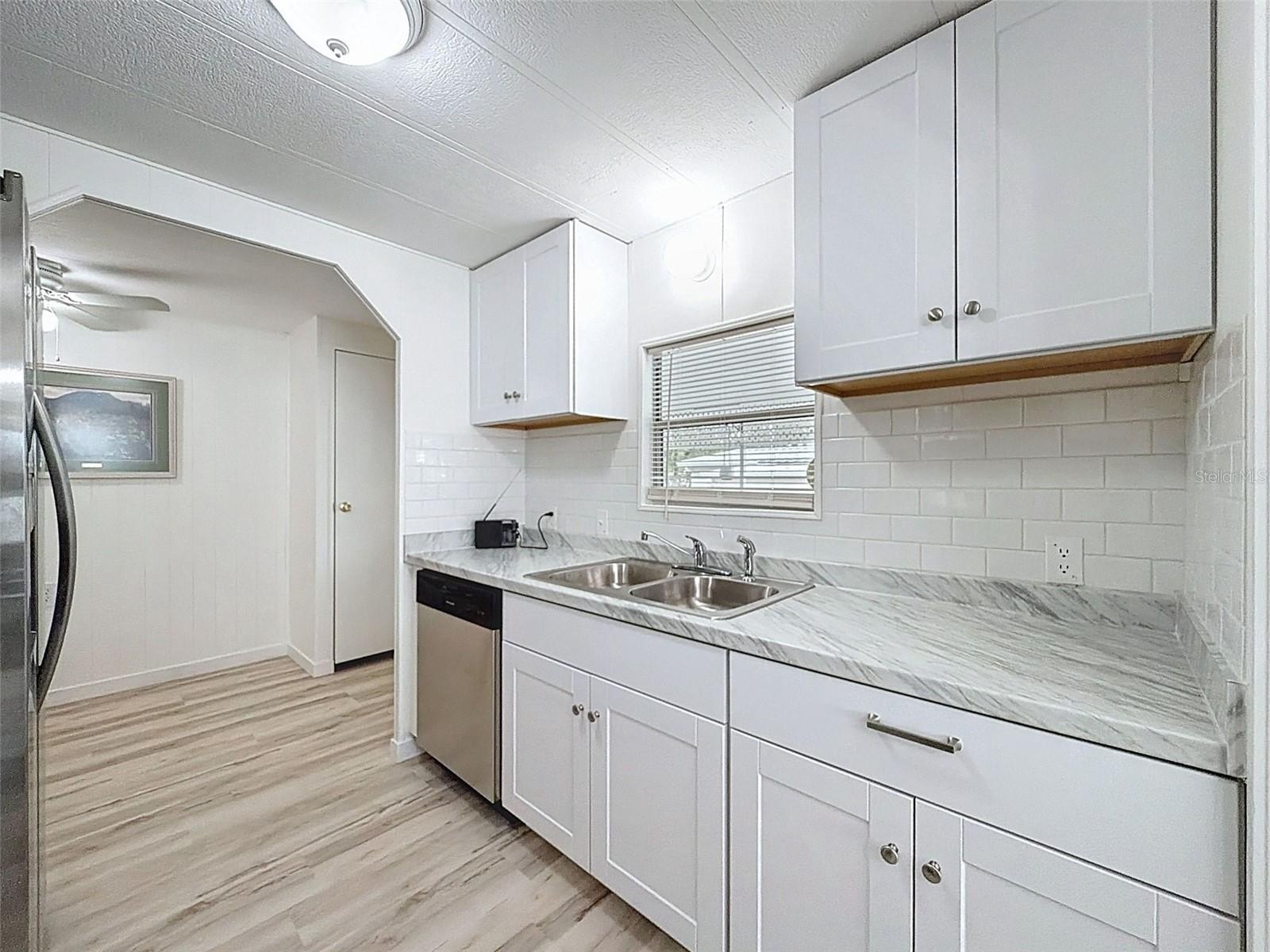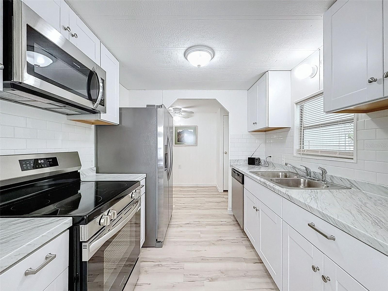 with this totally fully remodeled 2 bedroom 2 baths. It is bright & airy. The home features top of the line vinyl flooring throughout, new stainless-steel appliances, washer/dryer, new kitchen and bath cabinets, sinks, faucets, toilets, window blinds. Paint inside and out including ceilings, light fixtures, ceiling fans, screened porch, new T.V. and fireplace cabinet and furniture. Roof over is 2008 and A/C 2015.