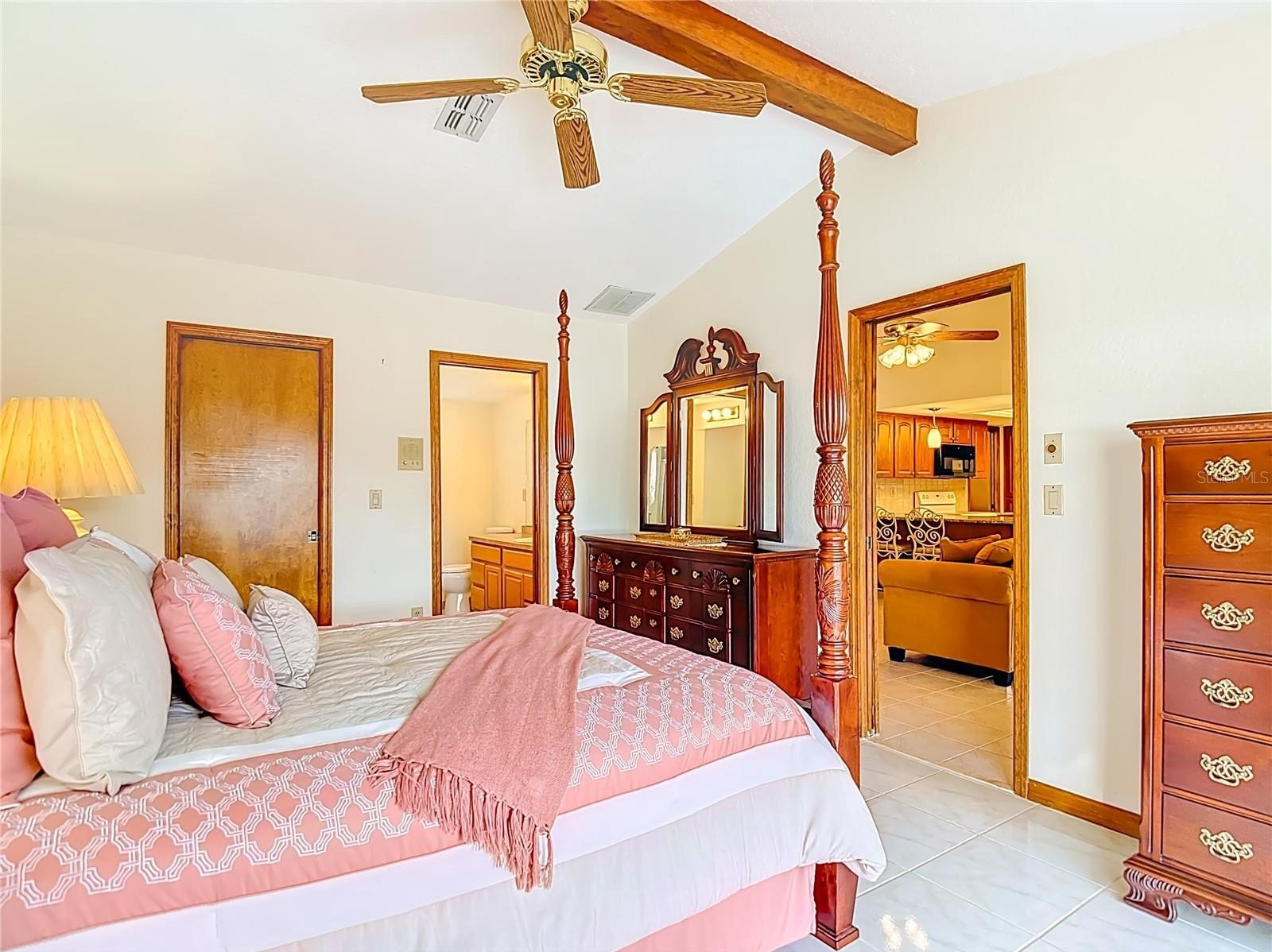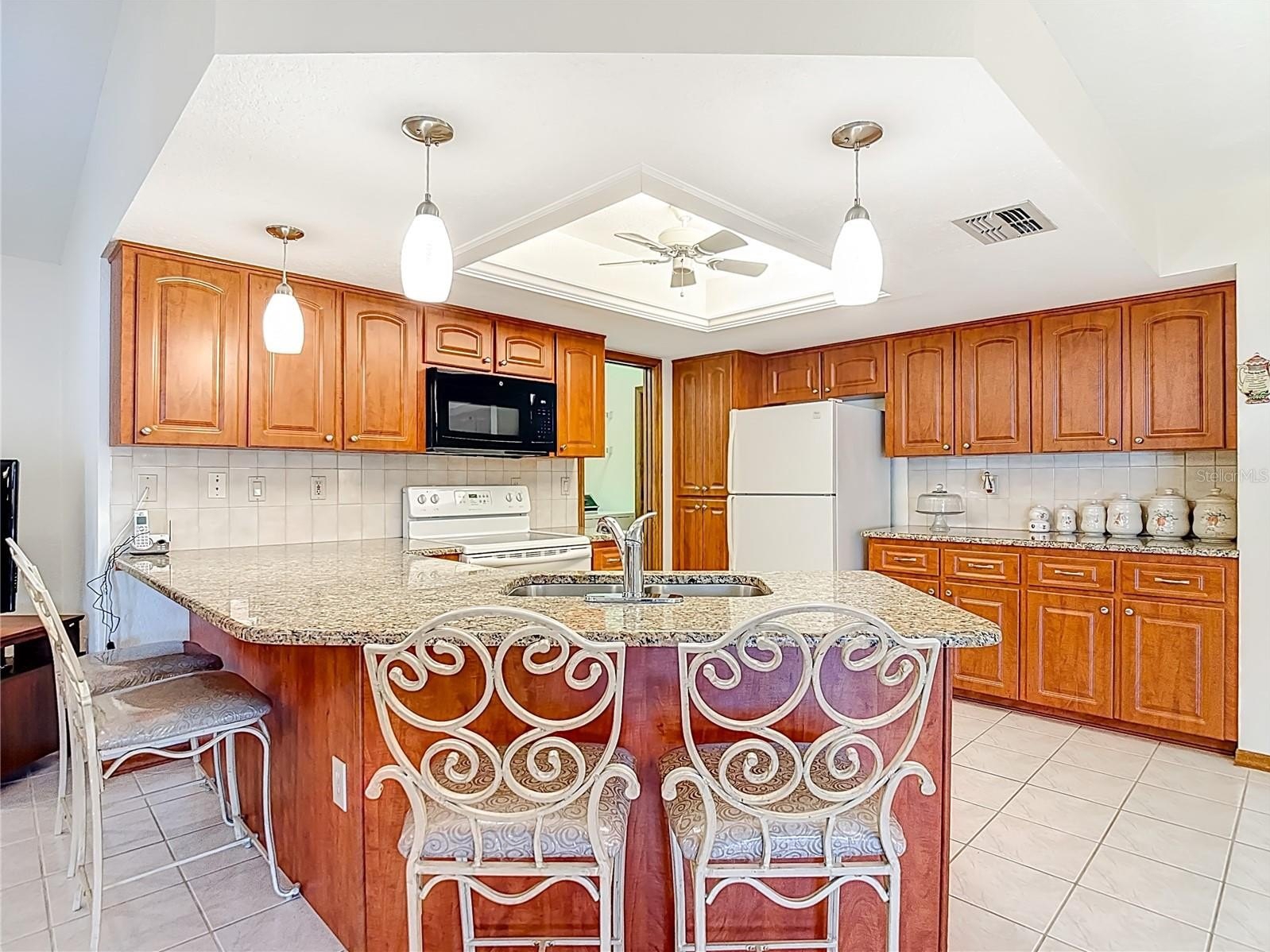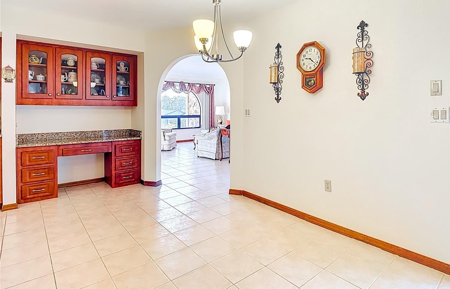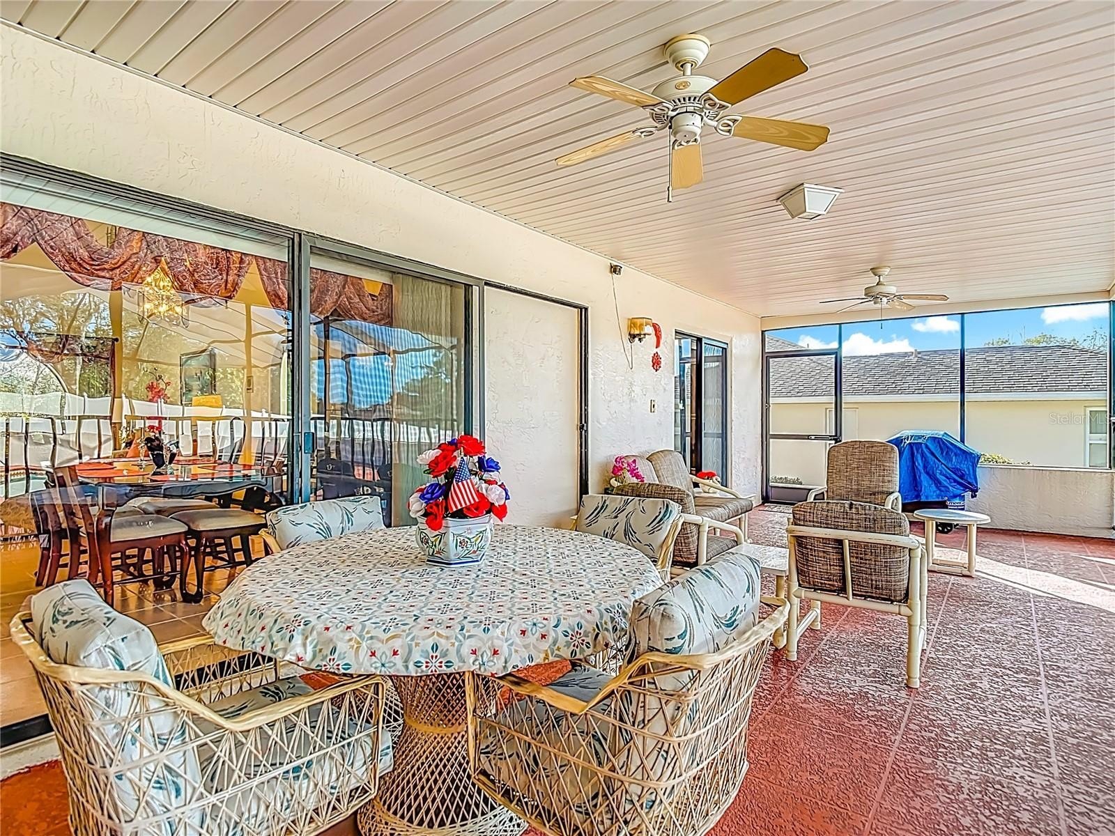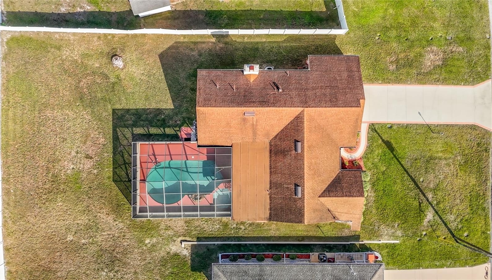 Welcome to this meticulously maintained 3-bedroom, 2-bathroom pool home nestled on a generous 0.32-acre lot. The property offers both privacy and curb appeal with partial fencing and a lovely landscaped front yard. An extended driveway leads you to a cozy front porch—the perfect spot to enjoy your morning coffee. Step inside and be greeted by an open floor plan that seamlessly connects the living and dining areas. Gorgeous tile flooring and a vaulted ceiling adorned with wood beams create a warm, inviting atmosphere. The spacious living room/dining room combo is ideal for entertaining family and friends. The expansive eat-in kitchen is a chef’s delight, featuring updated cabinets, granite countertops, a stylish tile backsplash, a built-in desk, closet pantry, and sliding doors that open directly to the pool area. The kitchen flows into the family room, where wood beam ceilings and a wood-burning fireplace offer comfort and charm for cooler evenings. Retreat to the spacious master suite, complete with a walk-in closet and elegant wood beam ceiling. The master bath boasts a separate vanity area, a tub with tile shower surround, and a large linen closet for added convenience. The two additional bedrooms are generously sized, each featuring walk-in closets and sharing a well-appointed second bathroom. The dedicated laundry room offers a utility sink, additional closet pantry, and comes equipped with a washer and dryer. Enjoy Florida living at its finest on the spacious lanai, which showcases decorative stamped flooring. The lanai opens to a sparkling diamond brite pool and spa, complete with a beautiful waterfall feature and views of the expansive backyard with vinyl fencing—perfect for relaxation and entertaining. Additional features include oversized 2 car garage with pull-down attic access, Roof 2012, AC 2014, brand new water heater, newer aluminum ceiling in lanai and a 7-zone sprinkler system. This meticulously maintained, move-in-ready home offers a perfect blend of comfort, style, and modern upgrades—making it an exceptional find for those seeking a spacious retreat. Repaired Sinkhole Home. Docs available upon request.