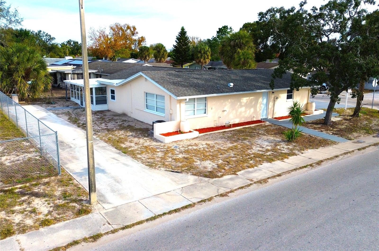 UPDATED BRIGHT HOME, CORNER LOT, WITH 3BR/2 BATH/2 CAR GARAGE, OFFICE/BONUS ROOM, BAR AREA AND RV OR BOAT PATH. An excellent location in a well-established family neighborhood. As you approach the home you will see the specious foyer, leading you to an elegant front door. Step into the house and see a generous living/ dining Room area, a perfect space for gatherings and entertaining guests. To your front it is the bonus/office room that gets you to the back enclose with windows Lanai, An ideal retreat just waiting for you with access to your RV or boat path and the backyard and to the left it is the beautiful kitchen with new cabinets, modern quartz countertops and backsplash, new stainless steel appliances, and next to it the bar and thrid bedroom and then an open dining room for delightful meals and celebrations. From the entrance to your right the updated guest bathroom with new shower tile top to bottom, a new modern shower fixture, and a new vanity with a quartz top. From the kitchen you access the garage recently painted flooring and good lighting enabling you to use the spaces as a man cave or playroom! And the second bathroom with new shower tiles, a new modern shower fixture, and a new vanity. The house contains LED lighting fixtures and exceptional ceramic tile flooring with 5" floor molding trim all over the house, a combination hard to find in a house today also Throughout the house are new 6-panel doors. Recently painted interior, exterior...And much more! The house is located at walking distance to shopping stores too! ROOF INSTALLED IN 2025, AC SYSTEM 2021, PUBLIC SEWER, NO HOA, NO CDD, NO FLOOD INSURANCE REQUIRED!! Come see it before it gets under contract !!