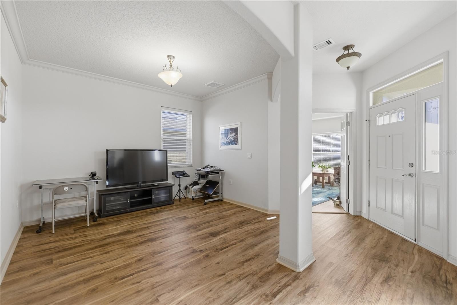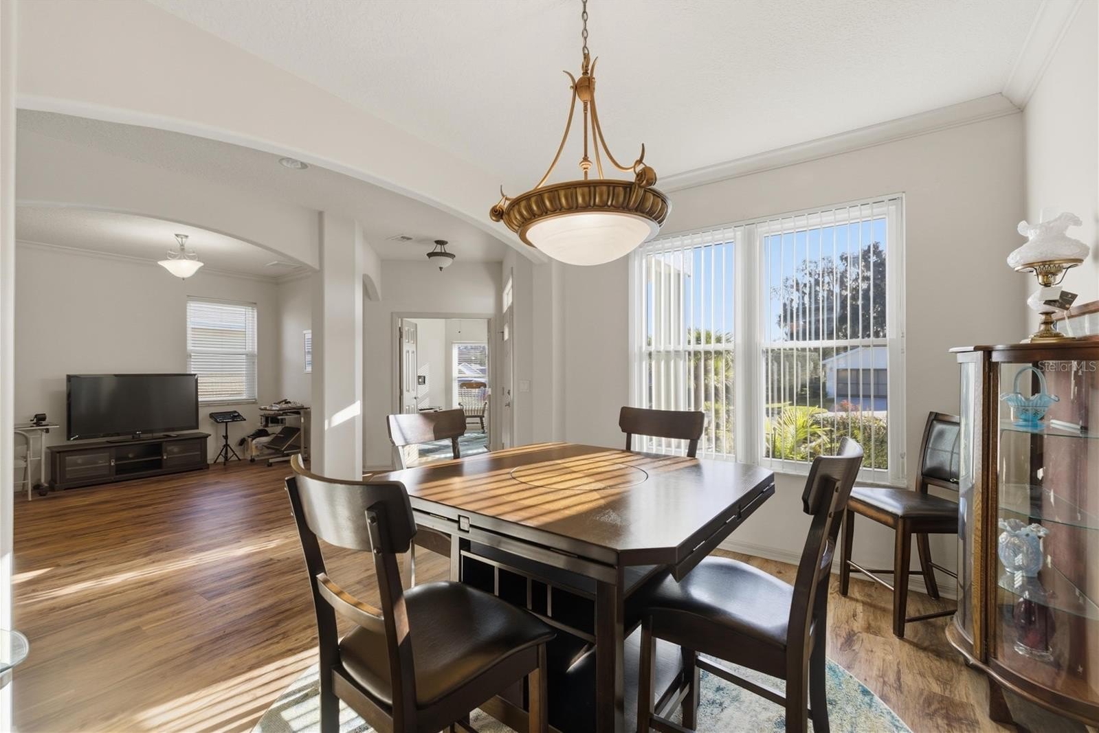 The home is enhanced by numerous upgrades, including crown molding, luxury vinyl plank flooring, solar tubes that fill the space with natural light, ceiling fans, and select updated appliances, creating a bright and inviting atmosphere throughout. The 2-car garage provides ample storage and workspace, making it ideal for projects, hobbies, and organized living.